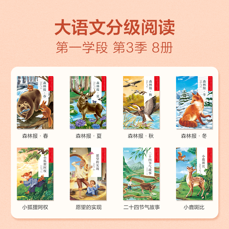 一二年级小学礼盒套装 学而思大语文分级阅读第一学段第三季 全8册 2年级 森林报春夏秋冬小狐狸阿权二十四节气故事小鹿斑比