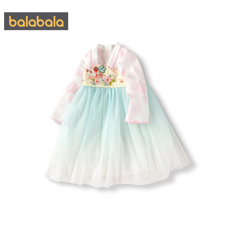 古风冬季 巴拉巴拉女童汉服连衣裙宝宝国风裙子儿童公主春秋季 新款
