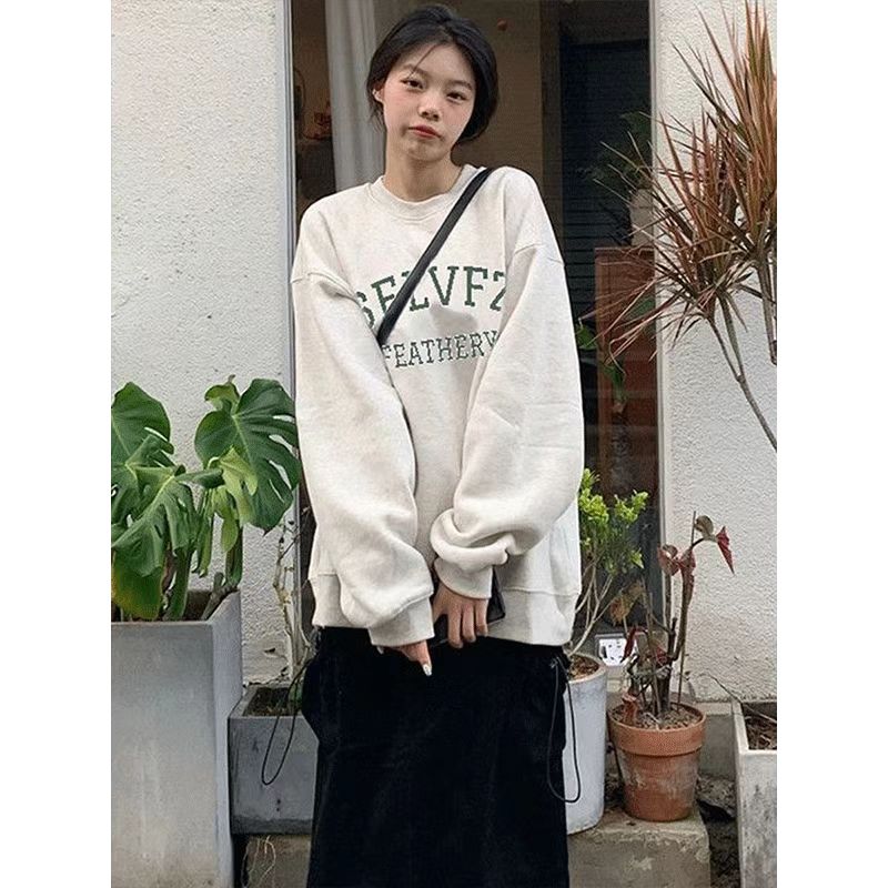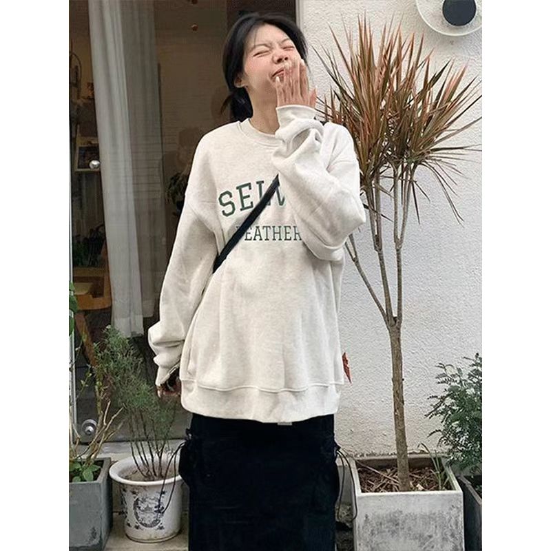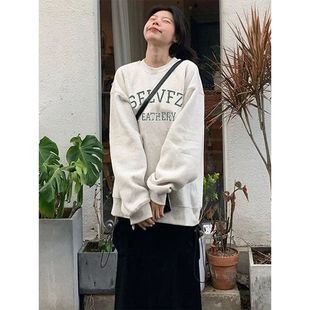 复古港风chic无帽重磅卫衣女秋冬爆款 设计感小众高街上衣女潮 美式