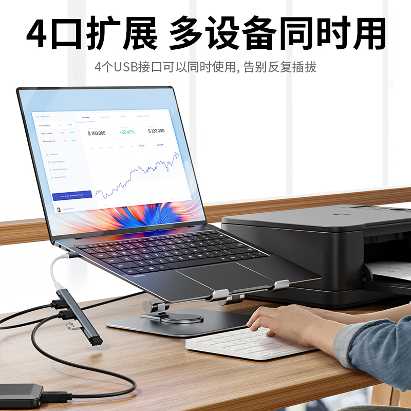 绿联usb拓展坞插头多口一分二集分线器typec延长线hub3.0外接u盘带供电转接头转换器笔记本电脑多接口扩展器
