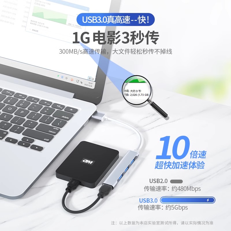 usb扩展器加长延长线插头3.0转换多接口集分线器typec拓展坞台式 笔记本电脑外接U盘硬盘车载hub转接带供电usp