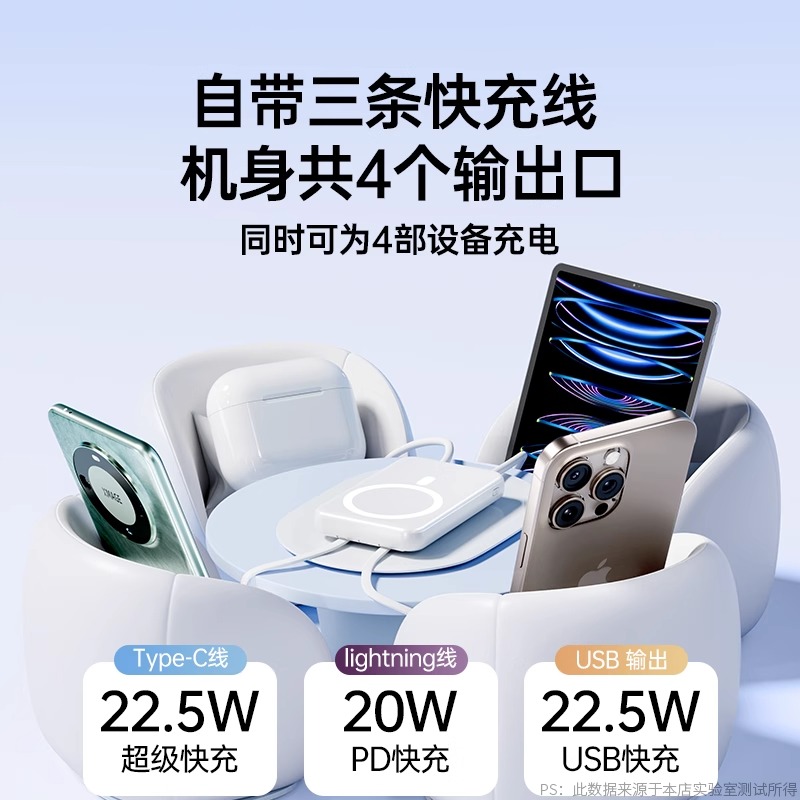 BS磁吸充电宝自带线大容量超薄小巧便携迷你Magsafe无线官方正品 20W快充2025新款 适用华为苹果 国家3C认证
