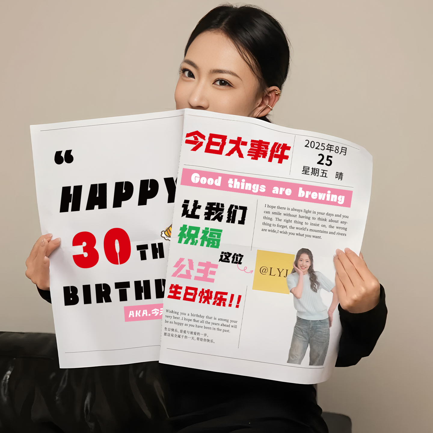 小红薯款 饰ins风报纸定制拍照道具男女成人布置氛围感 生日场景装
