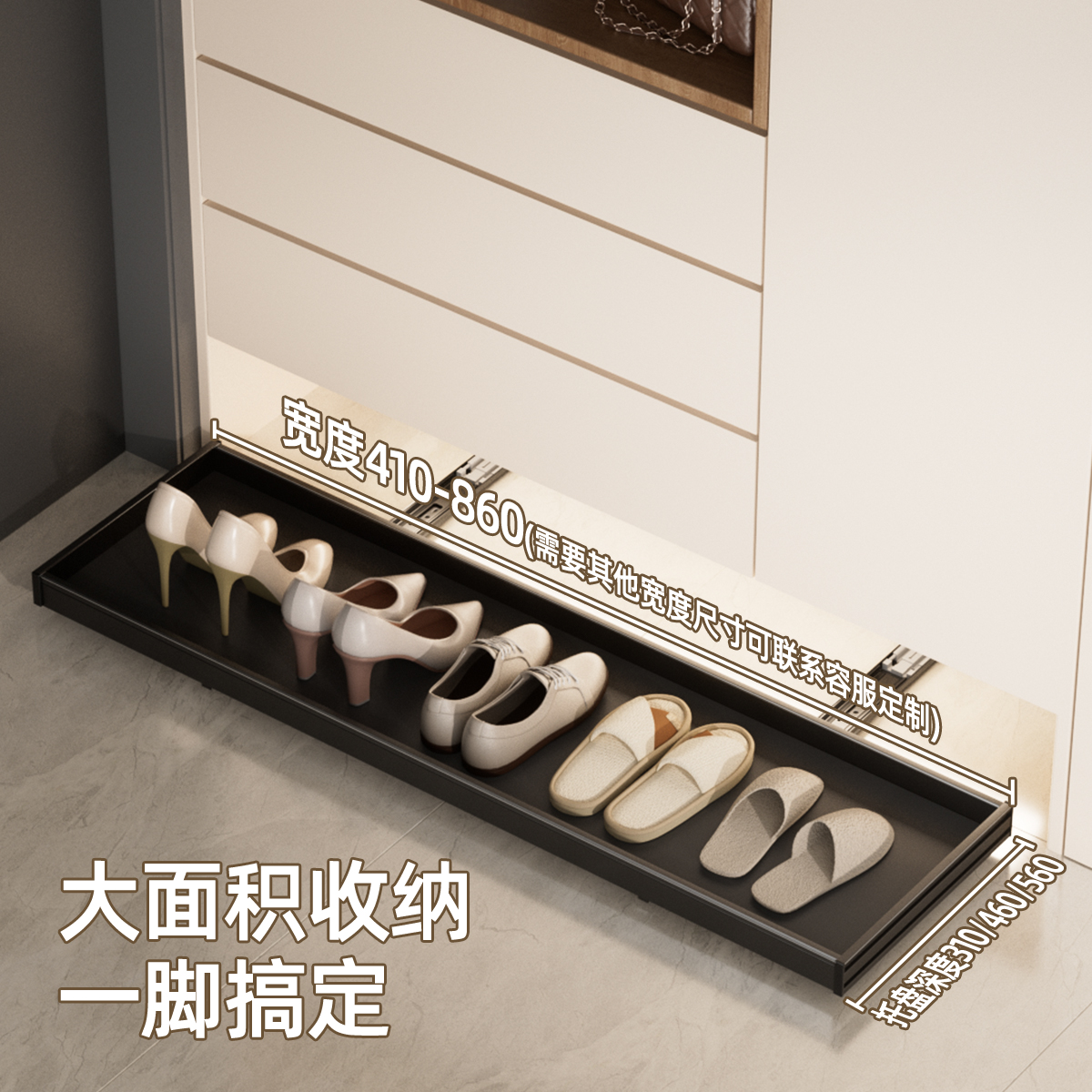 架 子收纳反弹滑轨入户门口玄关抽拉鞋 踢脚抽屉鞋 柜底部托盘家用鞋