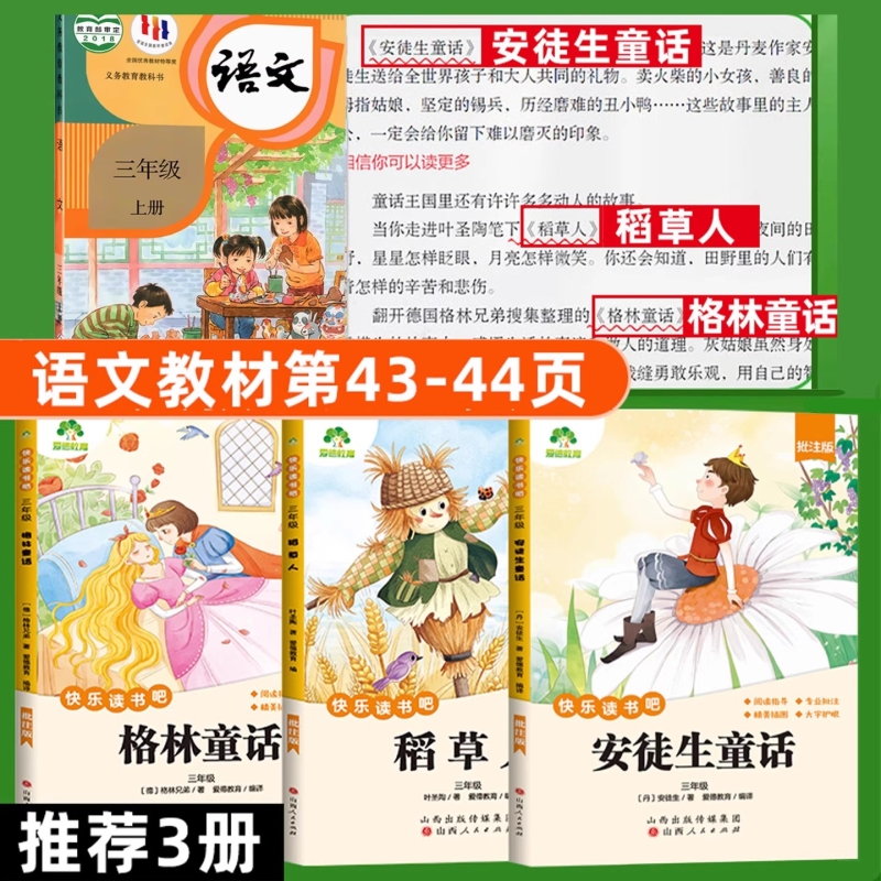 推荐 课外书稻草人书叶圣陶格林童话安徒生童话故事全集三上阅读书籍配套人教版 书目hh 快乐读书吧三年级上册必读正版 全套3册
