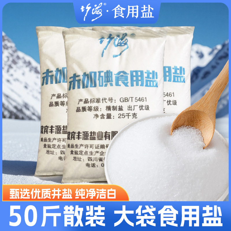 50斤装 标准食堂 未加碘食用盐25kg专用食盐工业深井盐无碘精制散装