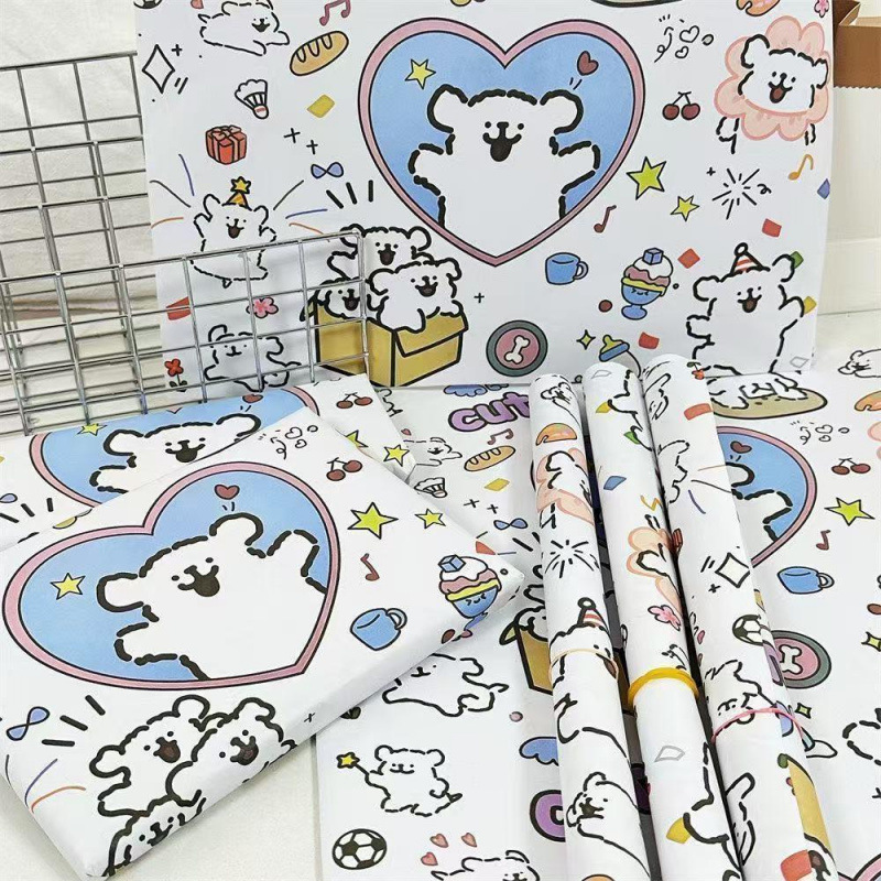 线条小狗礼品印花打包纸礼品袋套装 纸书皮纸 全套组合鲜花书籍包装
