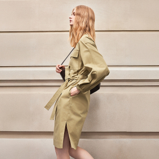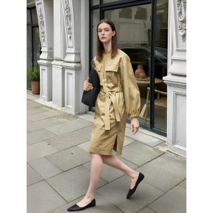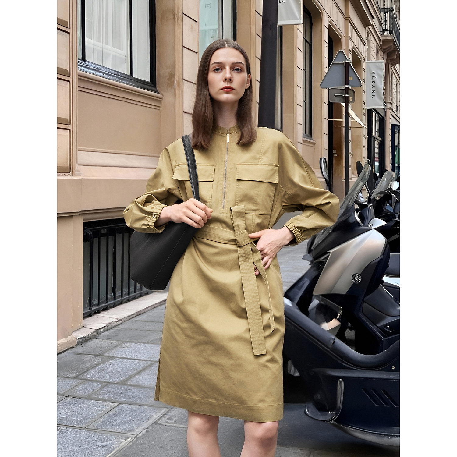 风口袋PU衬衫 工装 翻领短裙连衣裙女 新款 ONLY2025秋季