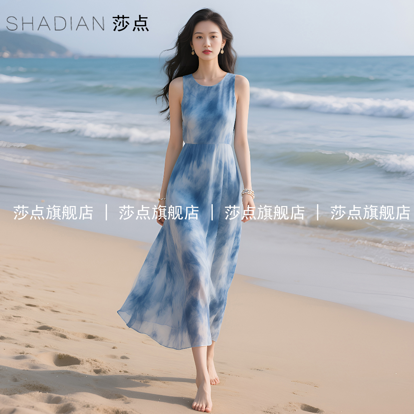 XZY 宽松休闲度假长裙 微胖复古波西米亚印花挂脖连衣裙女25年夏季