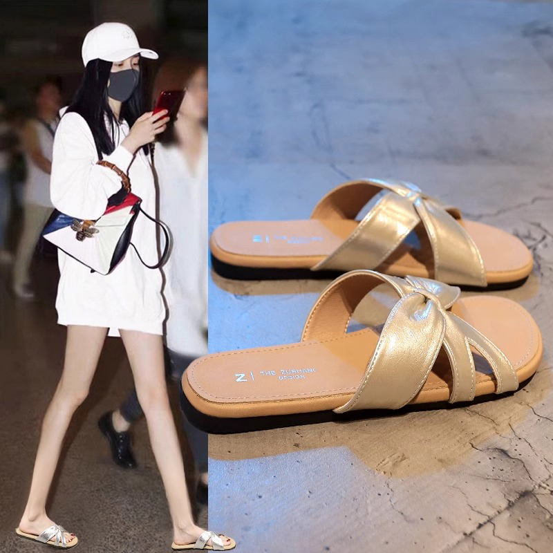 百搭仙女风一字拖配裙子沙滩凉拖鞋 女夏外穿2025新款 平底拖鞋 爆款