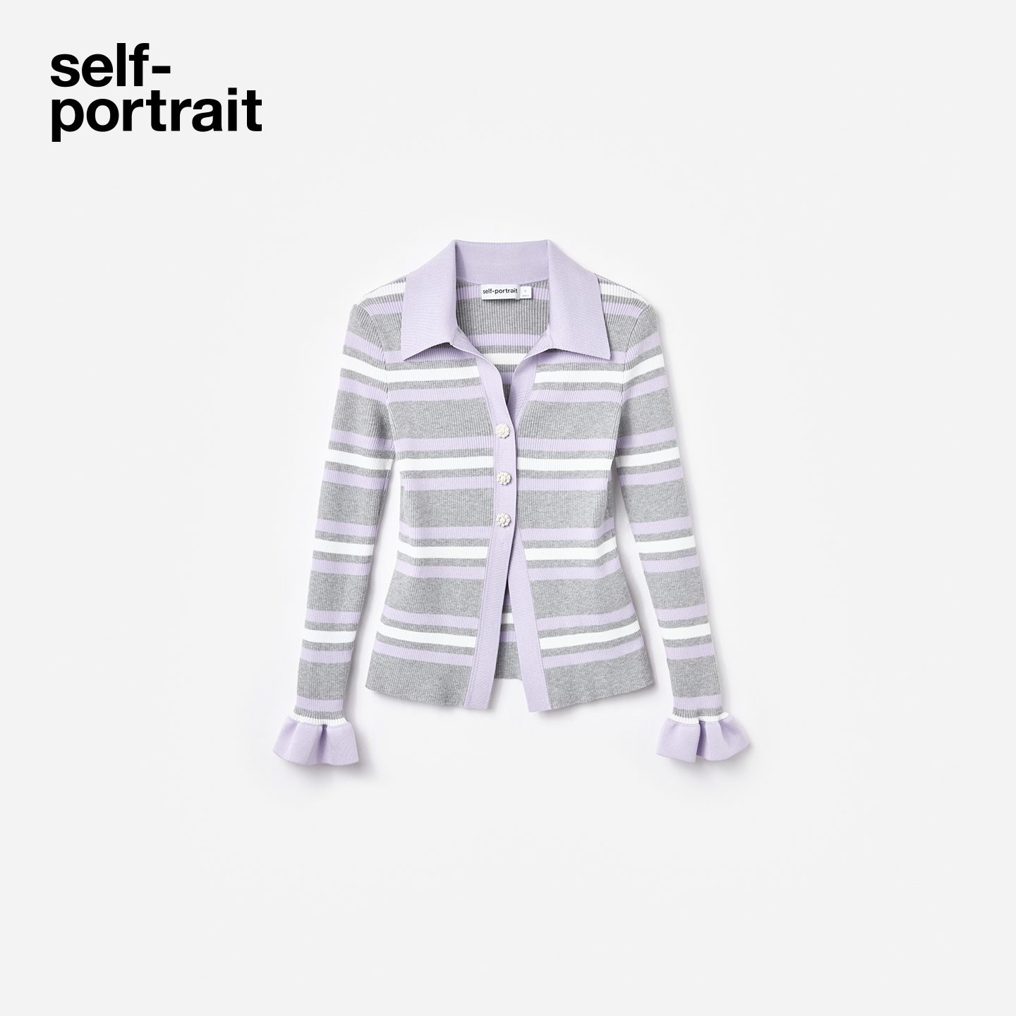 条纹针织毛衫 self 灰紫混色甜美修身 2025早秋新款 上衣 portrait