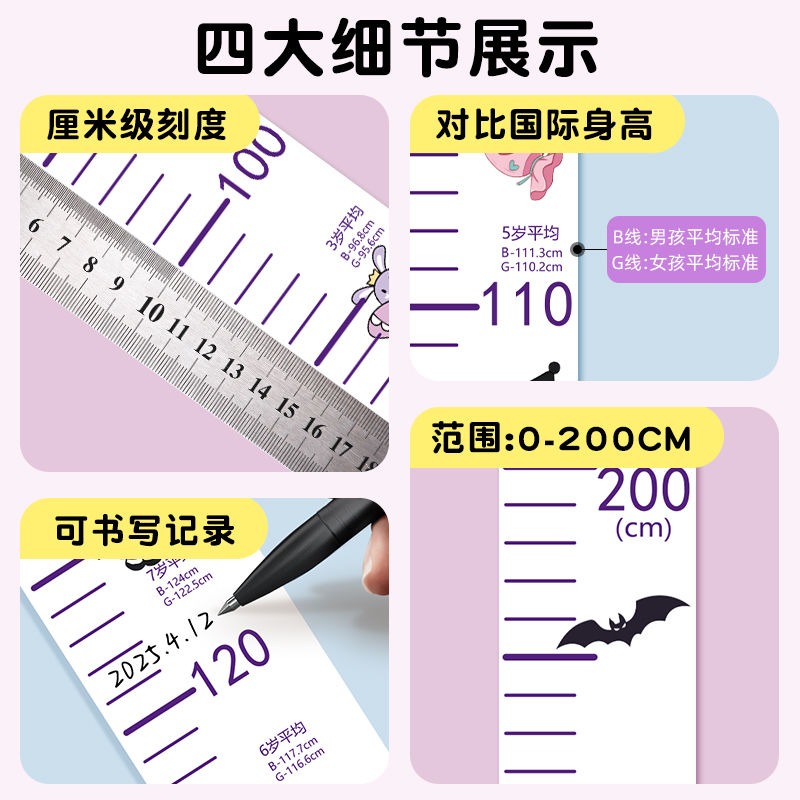 身高测量墙贴透明身高贴带标记 可移除不伤墙儿童身高精准身高尺