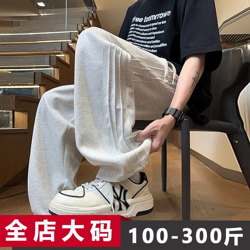 加绒街舞穿搭褶皱宽松休闲长裤 女秋冬季 子 灰色运动卫裤 自然涩美式