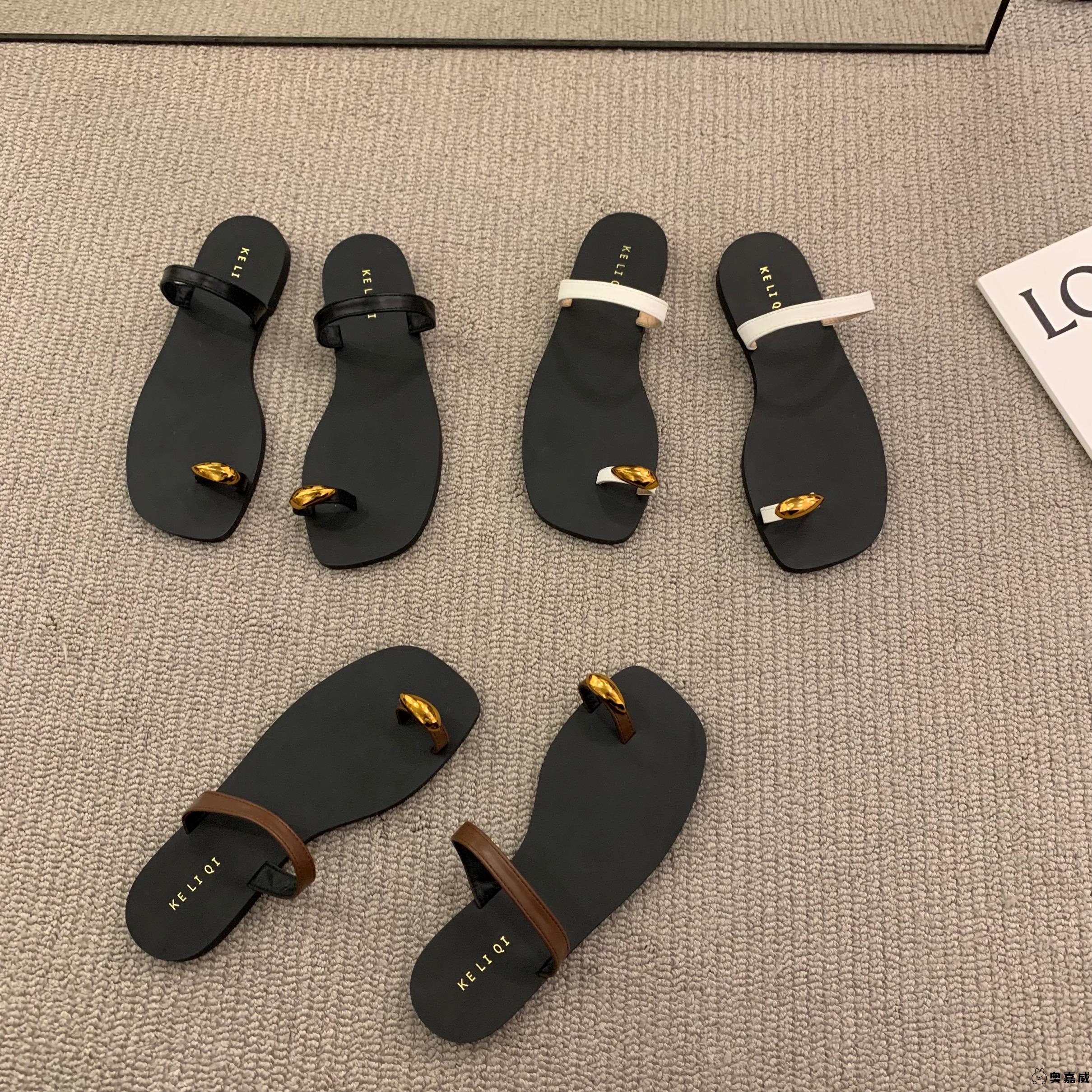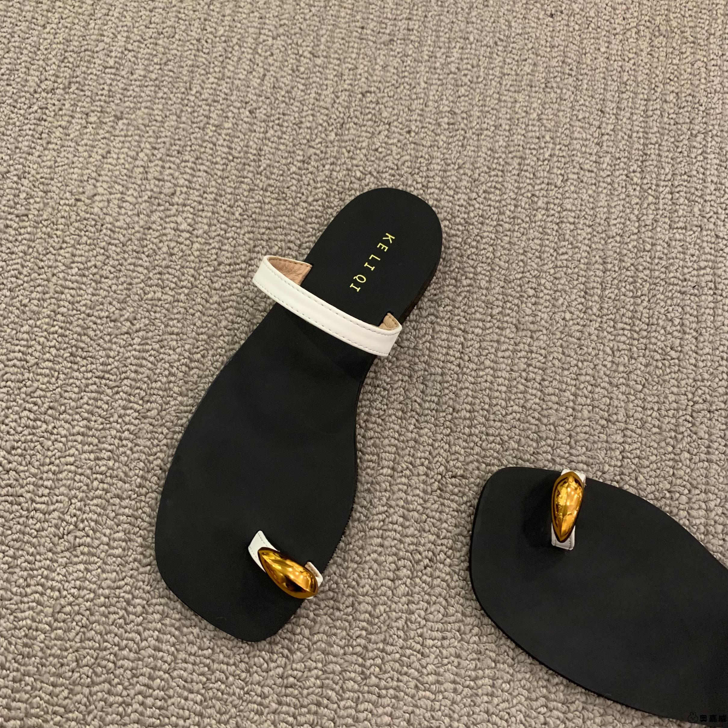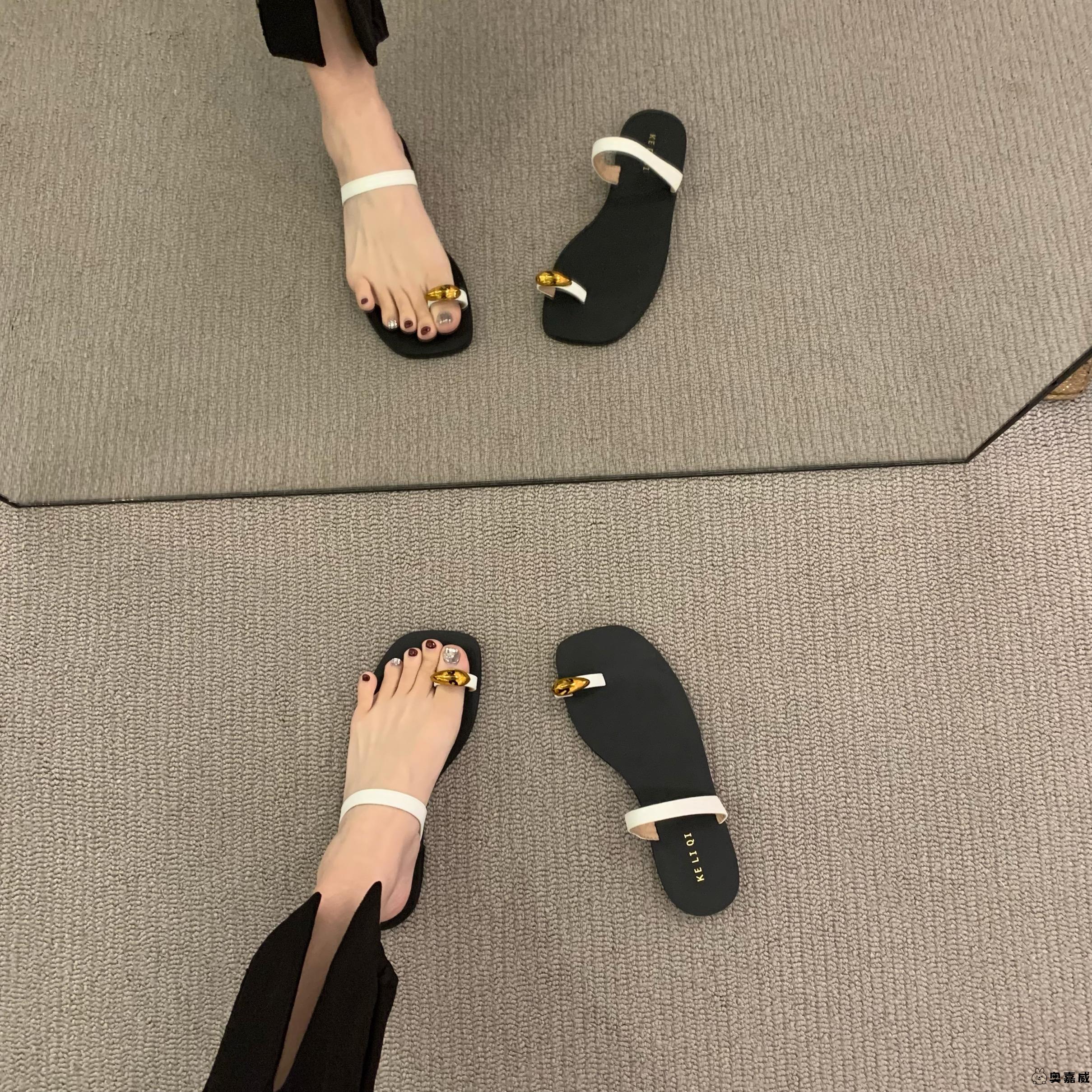 简约韩系沙滩仙女风凉鞋 平底套趾凉拖鞋 秋季 子外穿2025年新款 女鞋
