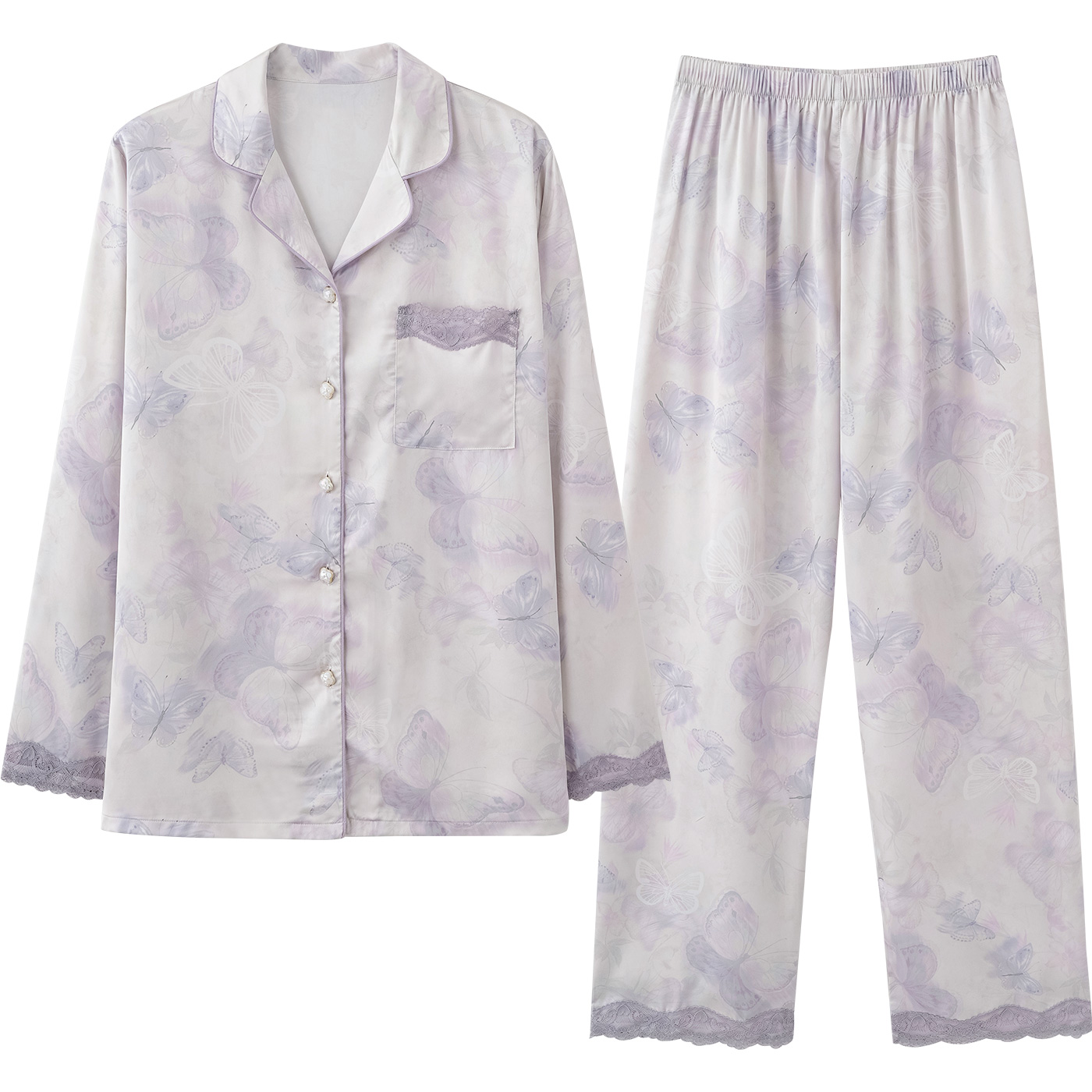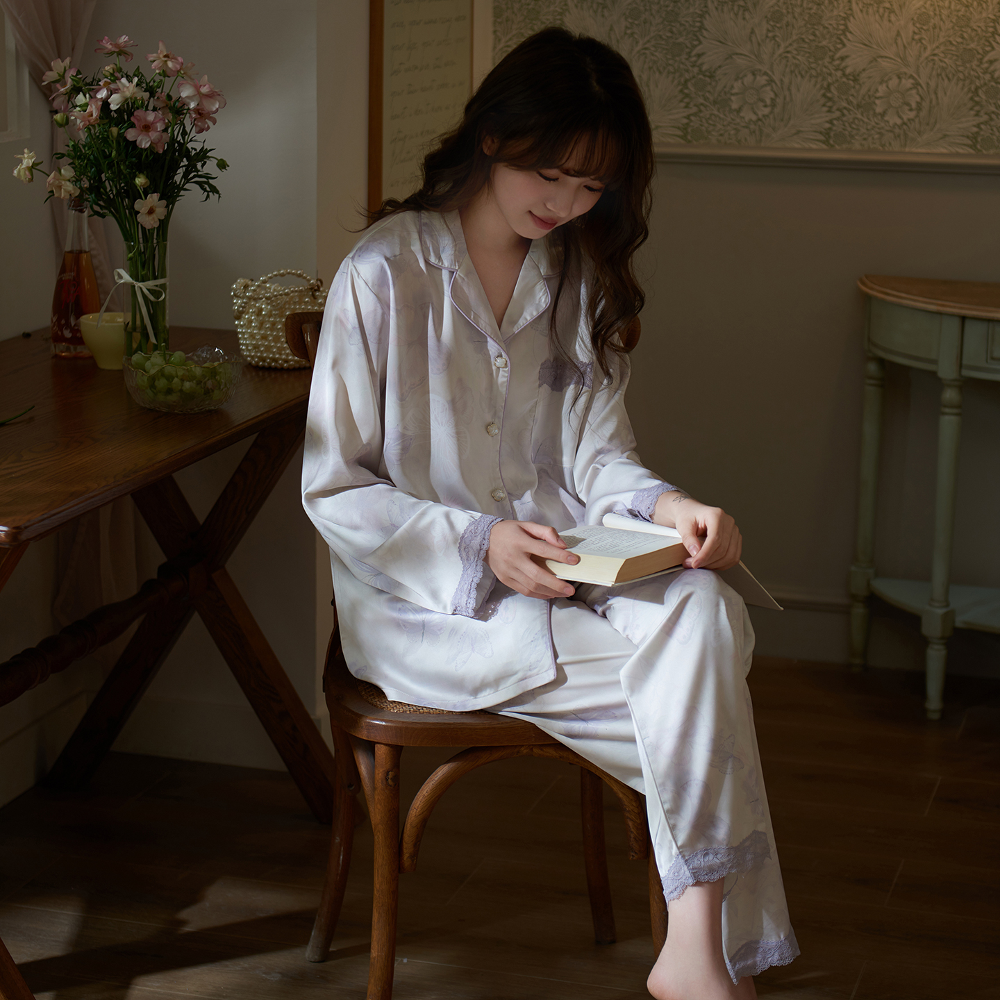 长袖 简约舒适家居服套装 长裤 夏季 可外穿 2025新款 纯棉睡衣女春秋季