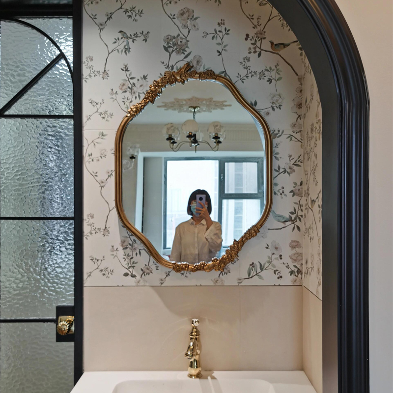 梳妆台面化妆镜led智能高清浴室挂镜 饰镜法式 欧式 高级雕花壁炉装