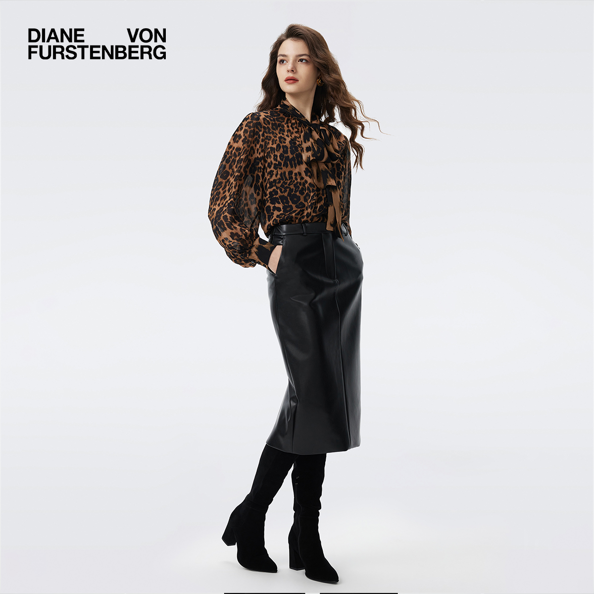 衬衫 DVF2025秋冬沙漠驼雪花豹纹图案雪纺长袖 BL3T004 博主同款