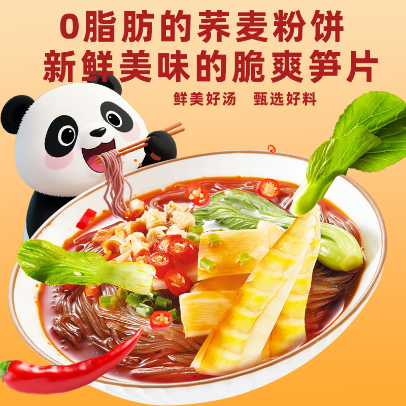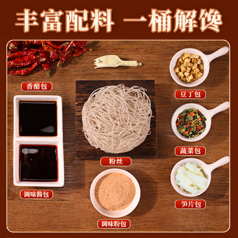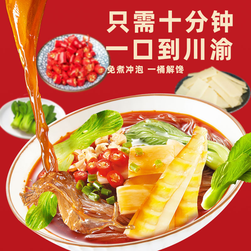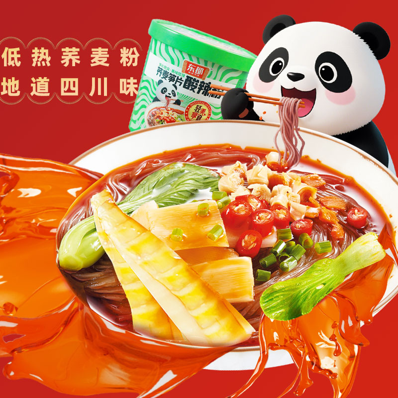 东都脆笋荞麦酸辣粉桶装 速食含熊猫笋重庆酸辣粉夜宵免煮冲泡即食