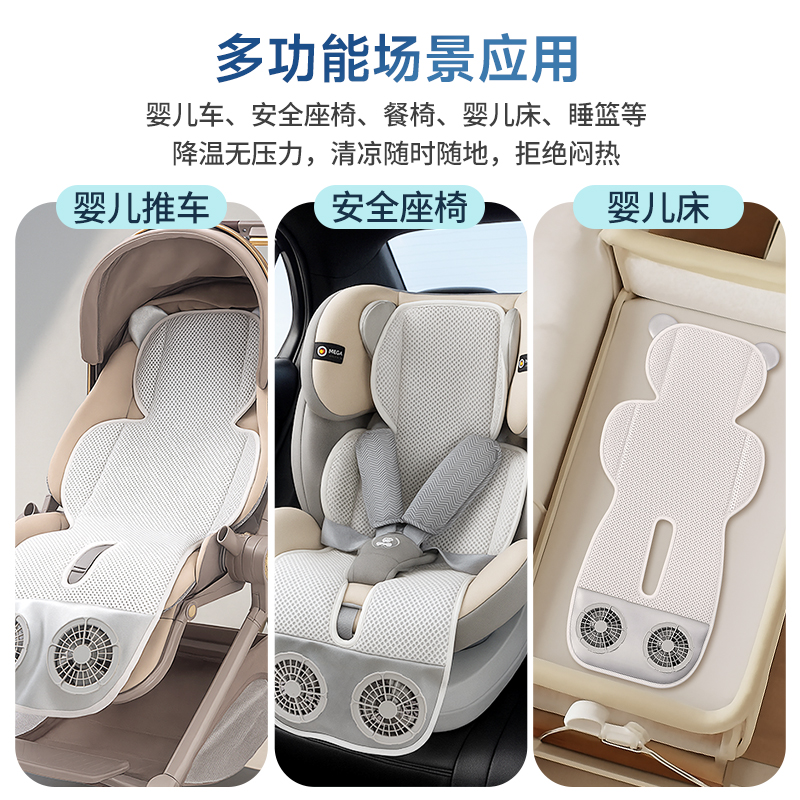 安全座椅通风坐垫婴儿车通用凉席儿童宝宝吸吹风散热带风扇夏天