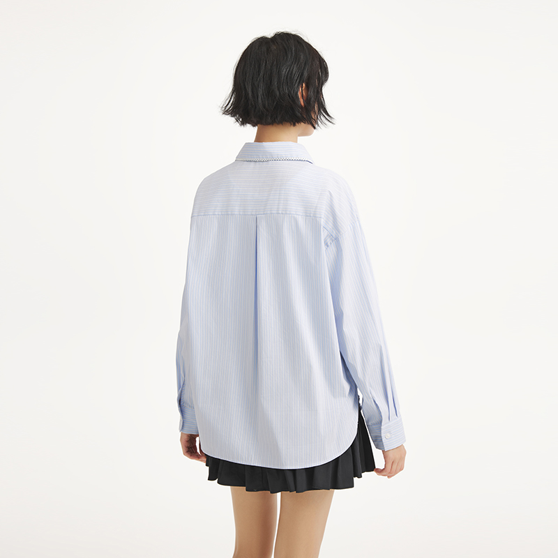 衬衣女05345882 纯棉复古风娃娃领长袖 佐丹奴灯芯绒衬衫 女秋冬新款
