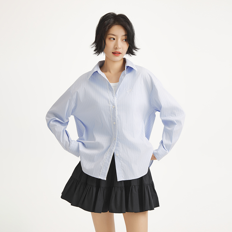 女士拉谷谷春秋长袖 木耳边白衬衫 LAGOGO法式 立领上衣 抗菌抗皱
