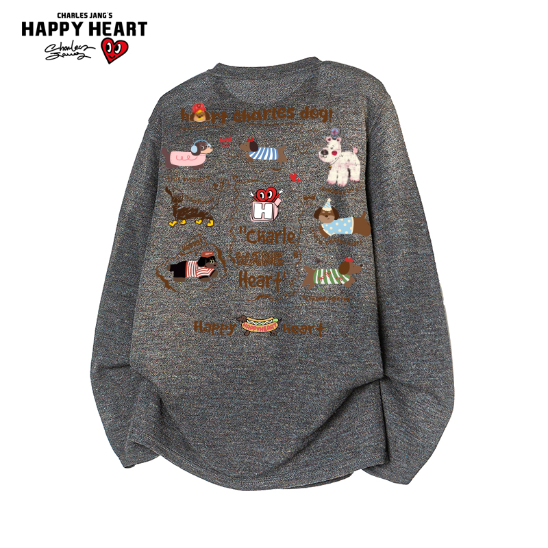 内搭圆领潮牌打底衫 查尔斯桃心 t恤男秋冬季 小狗印花长袖 卫衣 美式