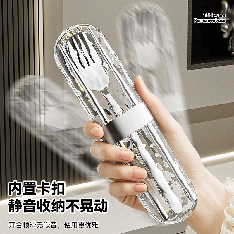 高颜值筷子勺子套装 304不锈钢便携餐具三件套学生外带上学餐具盒D