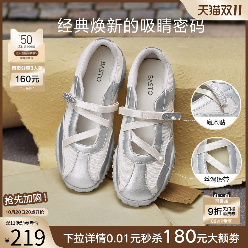 女鞋 2025新款 子时尚 板鞋 骆驼流光运动鞋 银色复古芭蕾风德训鞋 女款