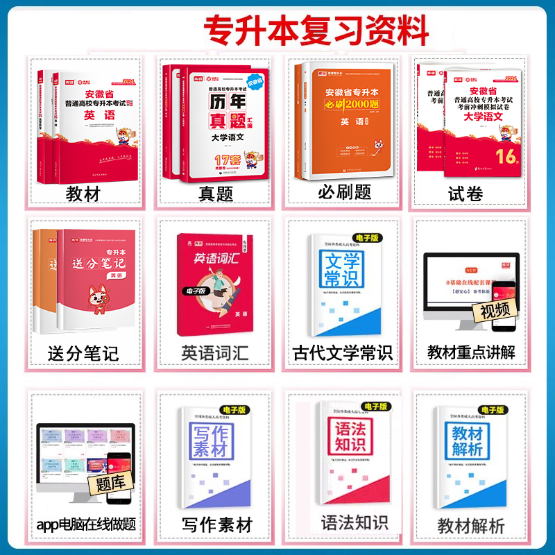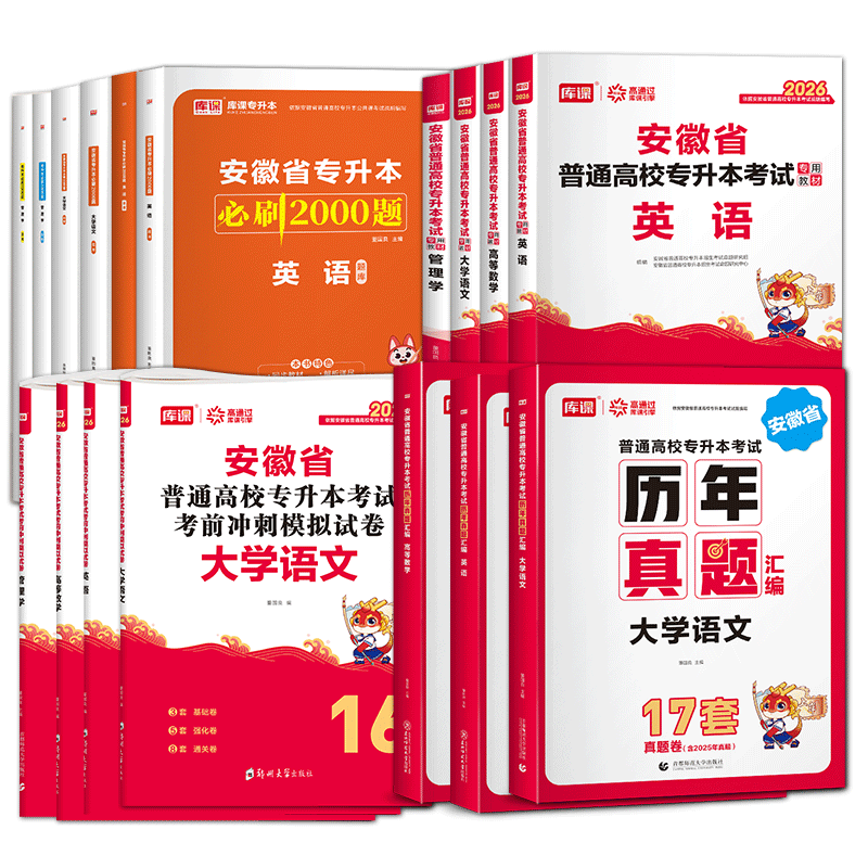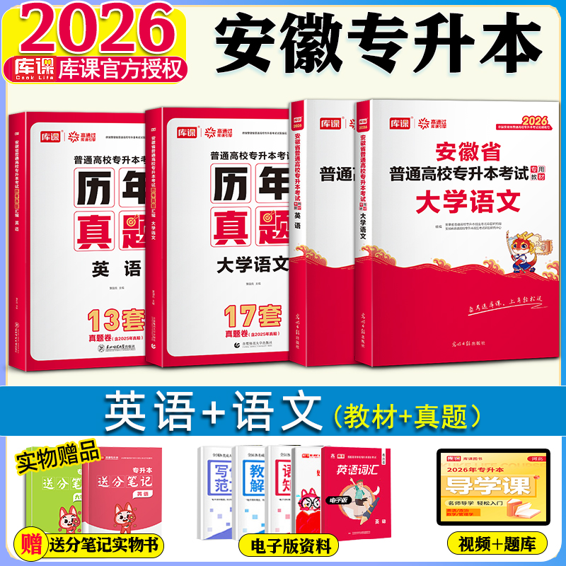 库课2026安徽专升本英语高等数学大学语文教材历年真题卷必刷题练习题安徽省普通高校专升本复习资料试卷高数管理学英语词汇书网课