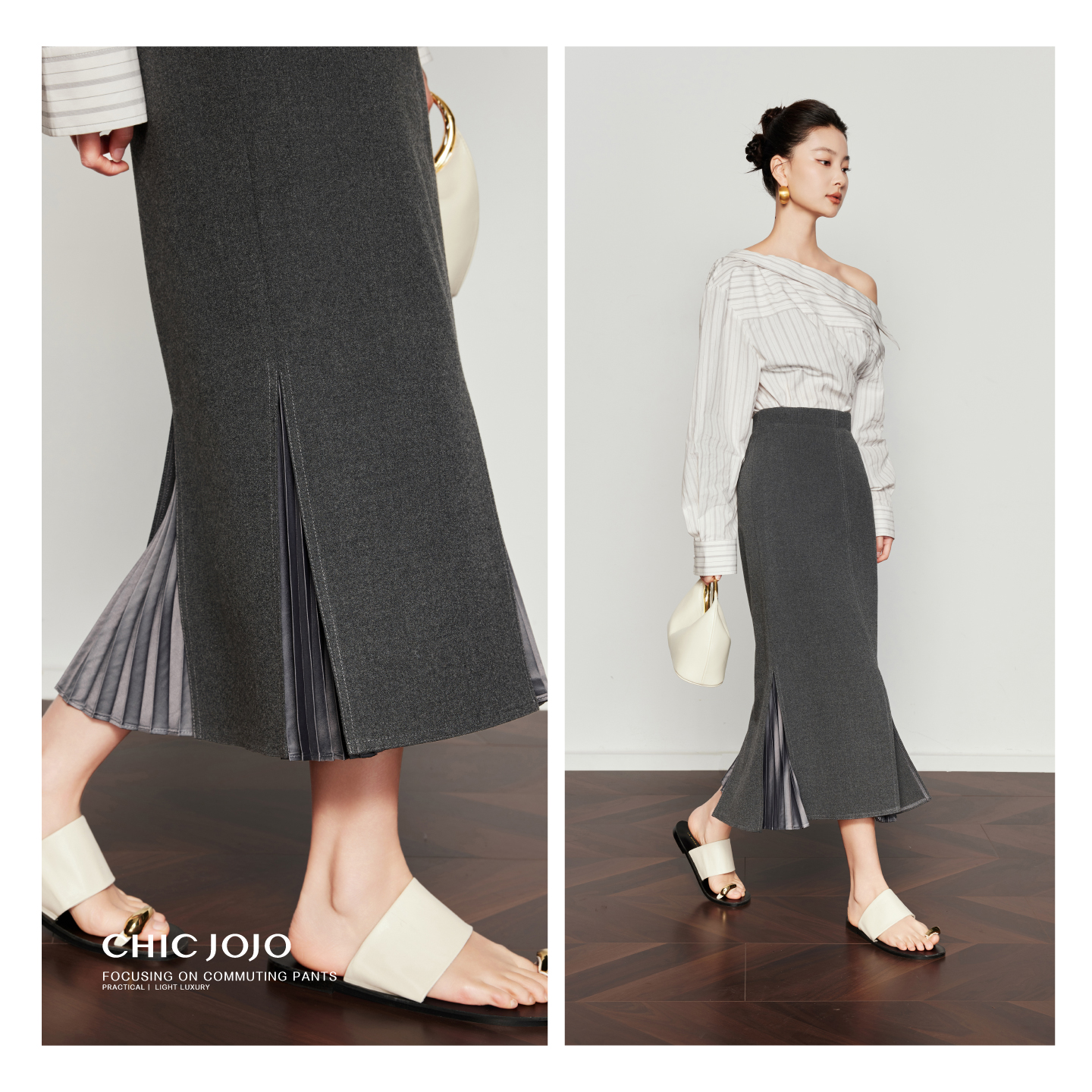 气质通勤西装 CHICJOJO灰色半身裙女25秋新款 伞裙 巴黎序章