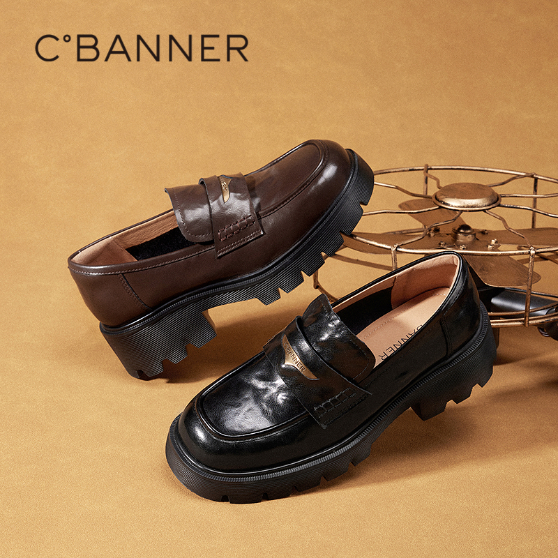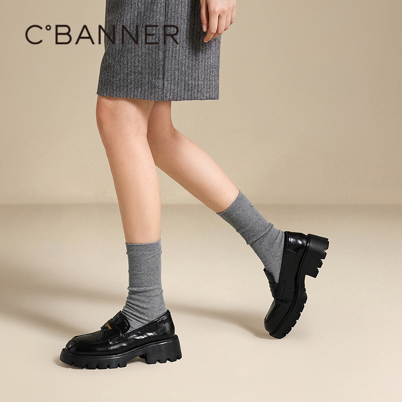 轻便通勤深口单鞋 千百度厚底增高乐福鞋 黑色小皮鞋 新款 女2025秋季