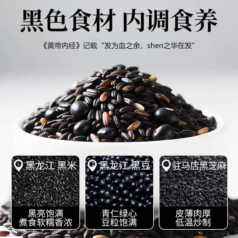五黑原材料黑豆黑米黑芝麻组合破壁机专用五谷杂粮早餐粥豆浆料包