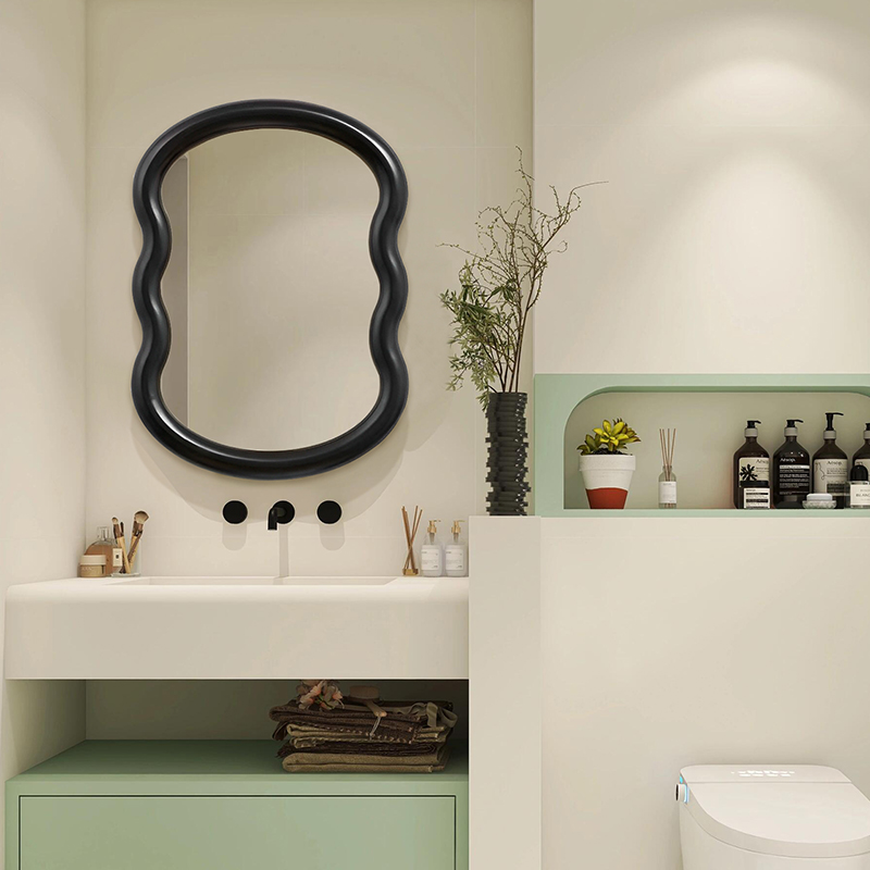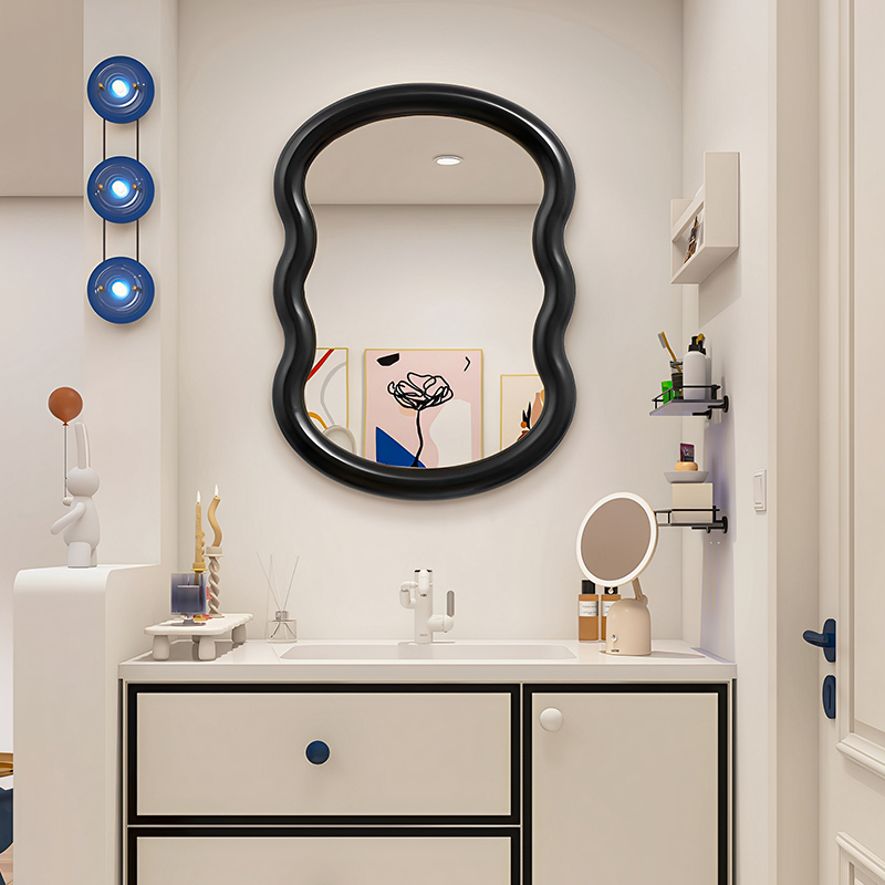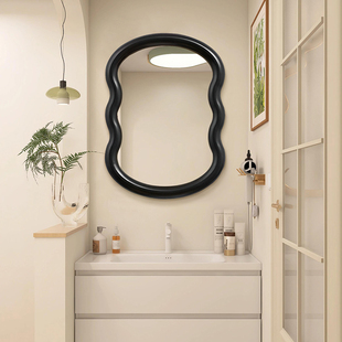 异形ins奶油风化妆镜家用主卧卫生间智能led梳妆镜高级波浪浴室镜