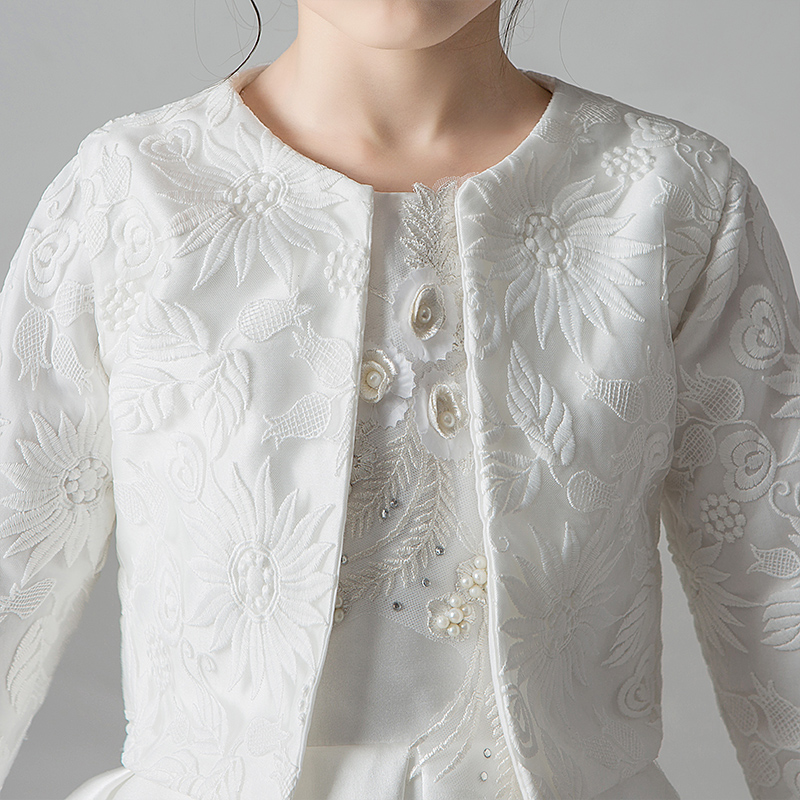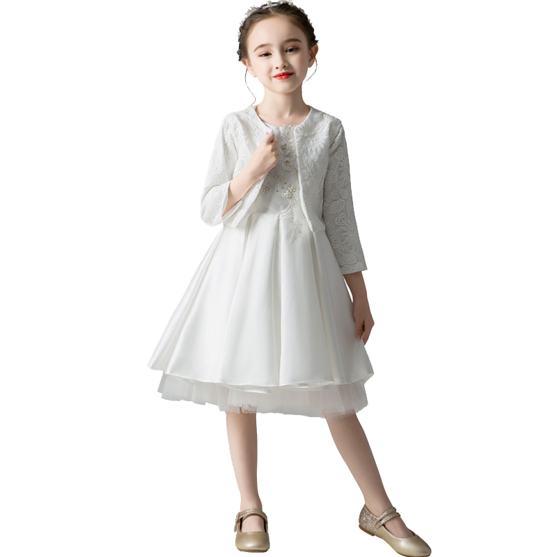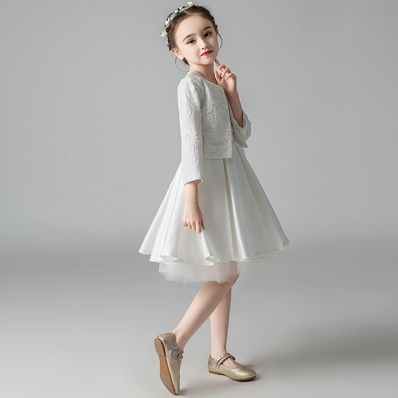 花童婚礼小女孩礼服女童公主裙冬天高端儿童钢琴演奏服加厚冬季 白