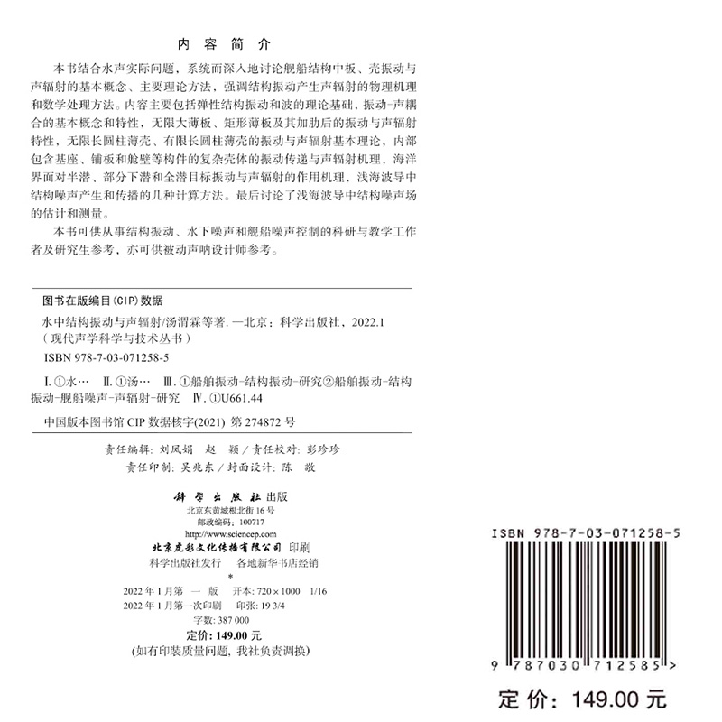 现代声学科学与技术丛书 汤渭霖 范军 正版 科学出版 水中结构振动与声辐射 等 社9787030712585 现货