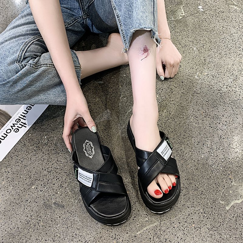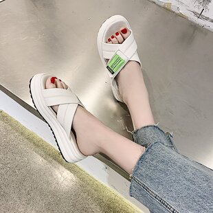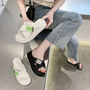 女外穿2025新款 增高海边凉拖鞋 夏季 百搭韩版 平底时尚 交叉一字拖鞋