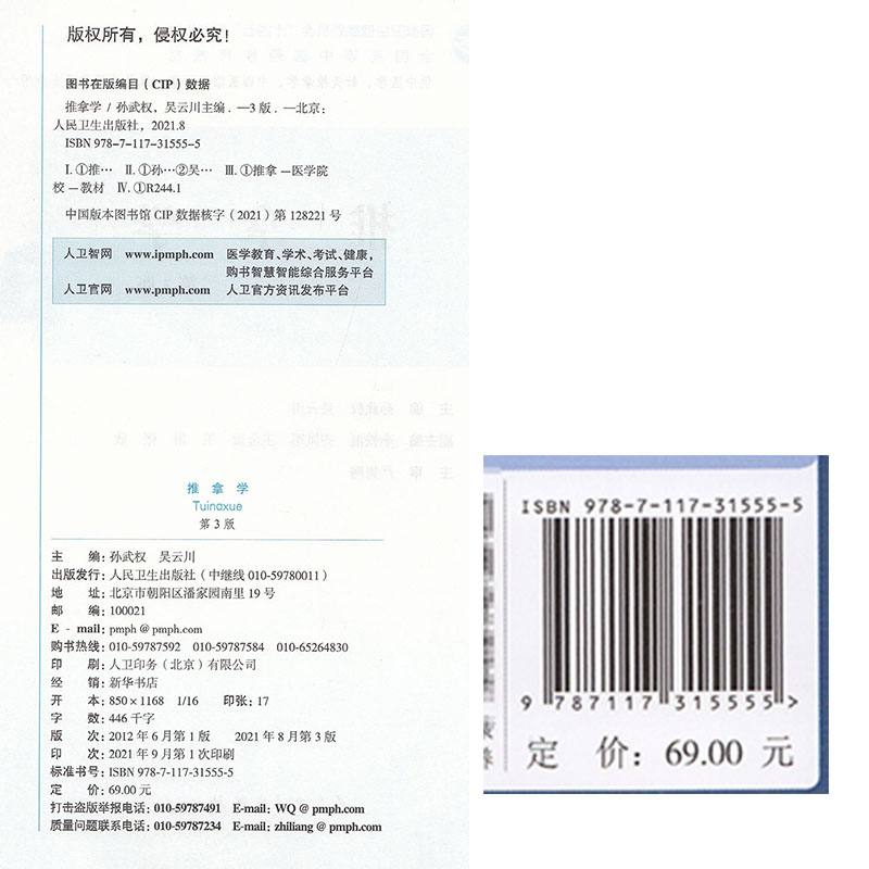 全国高等中医药教育教材 第四轮卫健委十四五规划教材 供中医学针灸推拿学等专业用 孙武权 9787117315555 推拿学 吴云川 第3三版