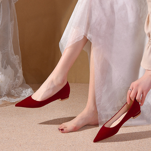 红色平底秀禾服婚纱两穿孕妇低跟新娘鞋 春季 不累脚 女2025新款 婚鞋