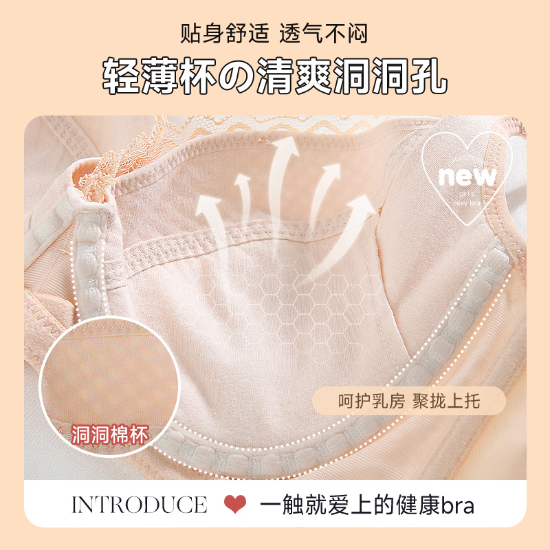 爱黛蜂巢棉杯内衣女夏季 记忆软钢圈上托聚拢收副乳文胸罩6678 薄款