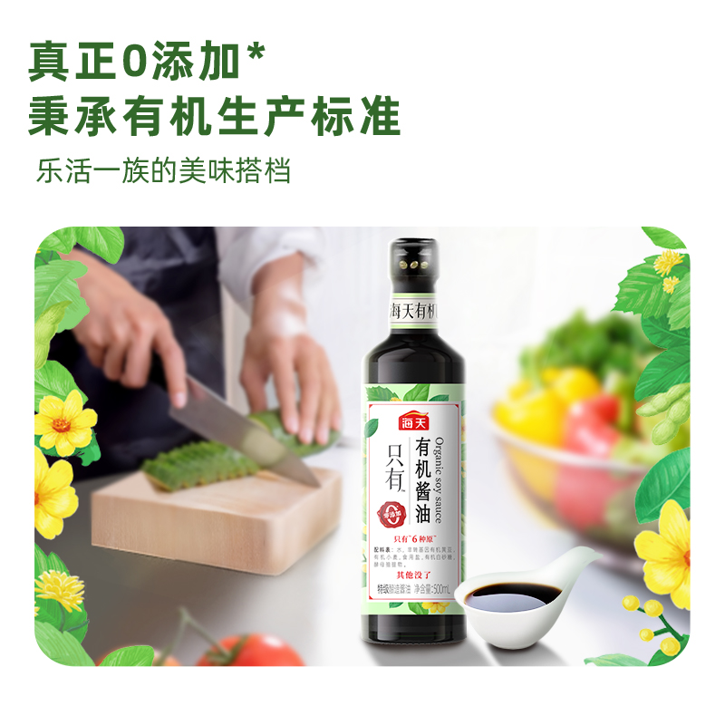 海天酱油0金标特级金标生抽500mL炒菜凉拌健康厨房调味品塑料瓶