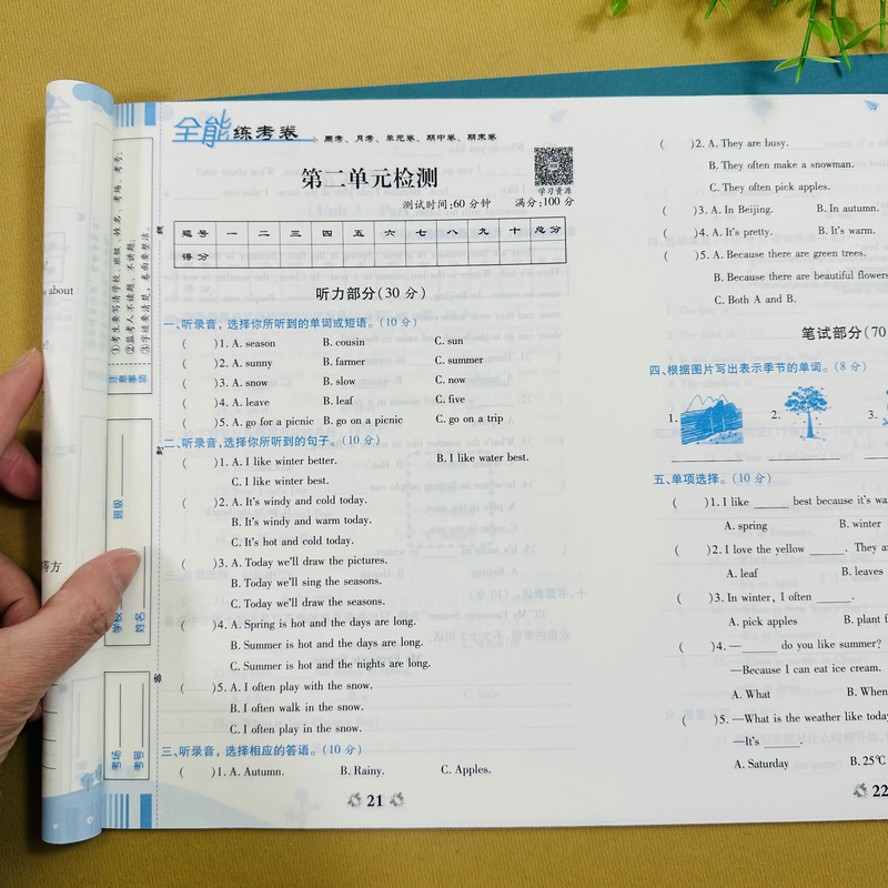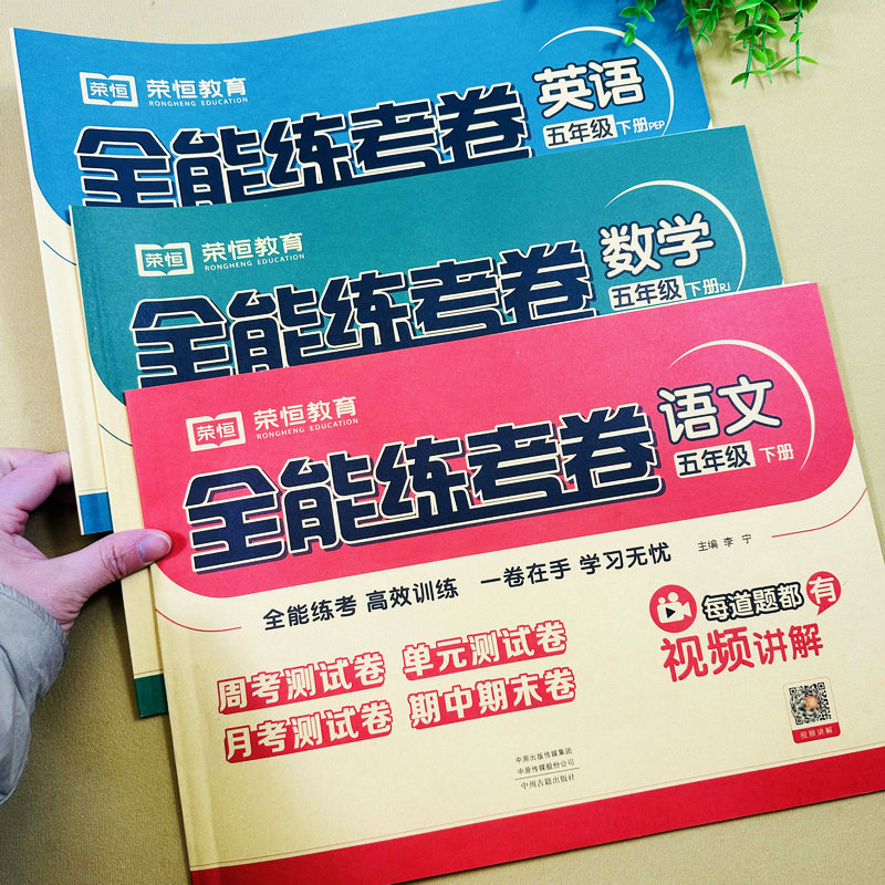 同步周考卷单元 全套3本小学五年级下册语文数学英语试卷人教版 视频讲解 测试卷月考期中期末模拟卷基础练习卷复习考卷PEP版 扫码