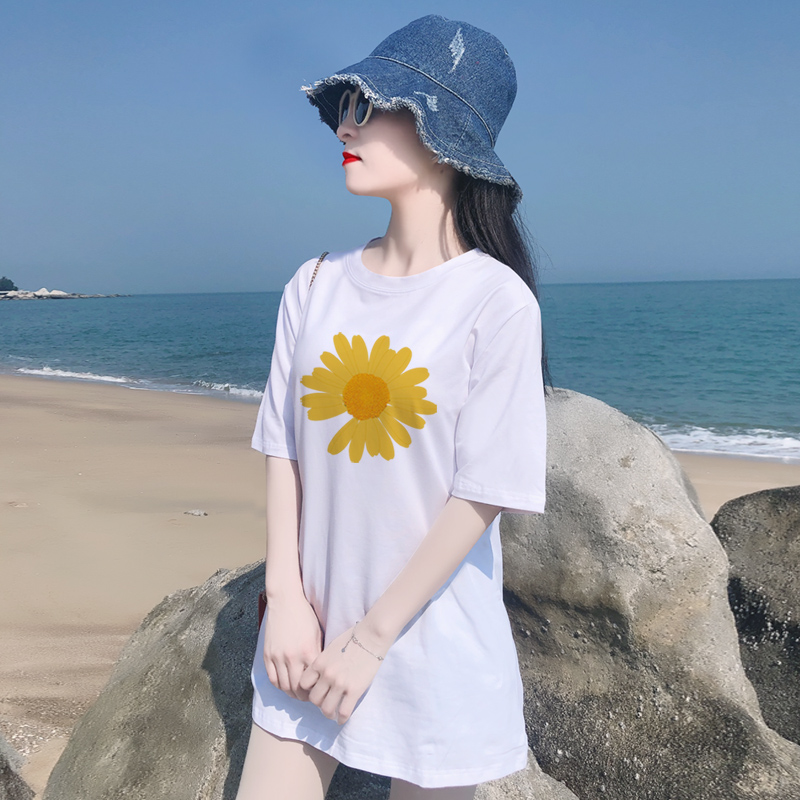 t恤女白印花热辣潮搭辣妹上衣 短袖 甜辣系over size宽松圆领中长款