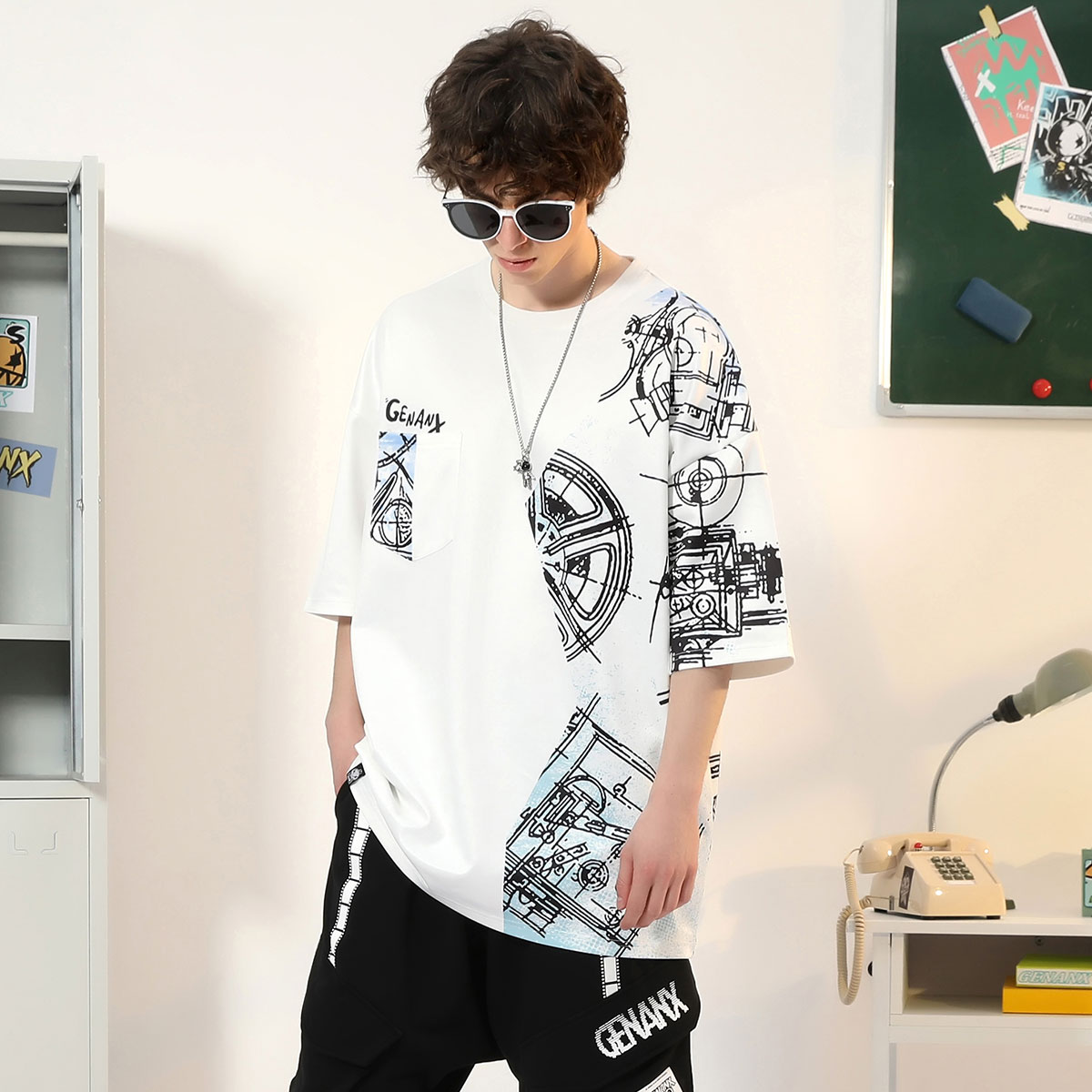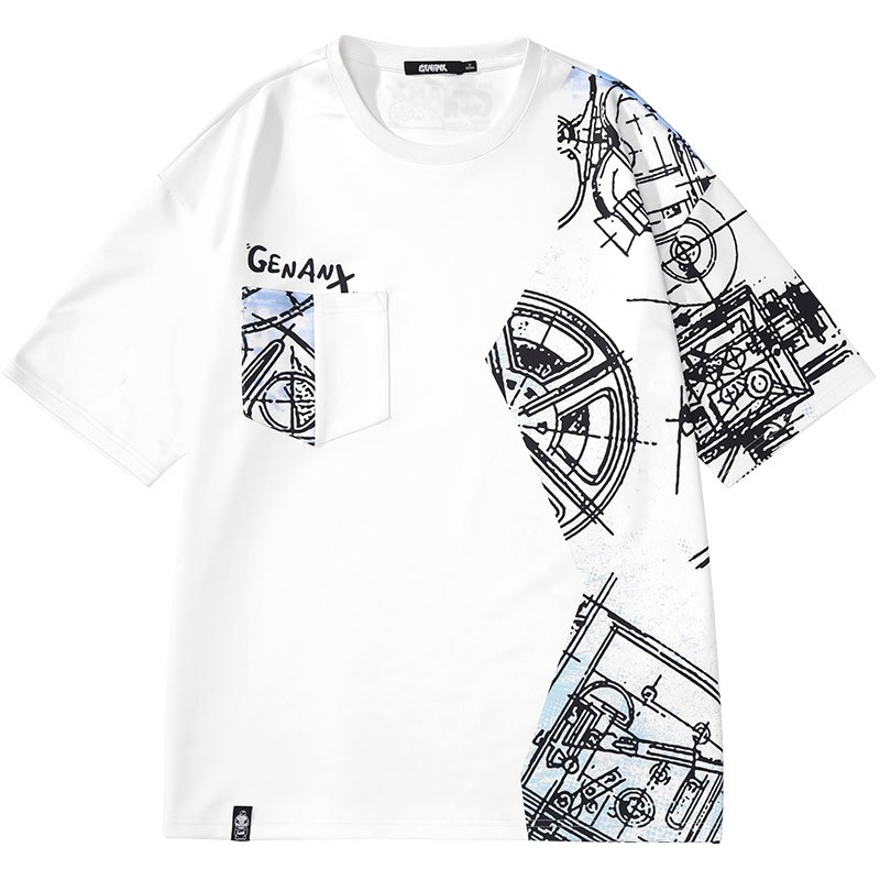 涂鸦印花宽松太空棉重磅白色T恤 新款 GENANX闪电潮牌圆领短袖 夏季