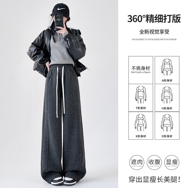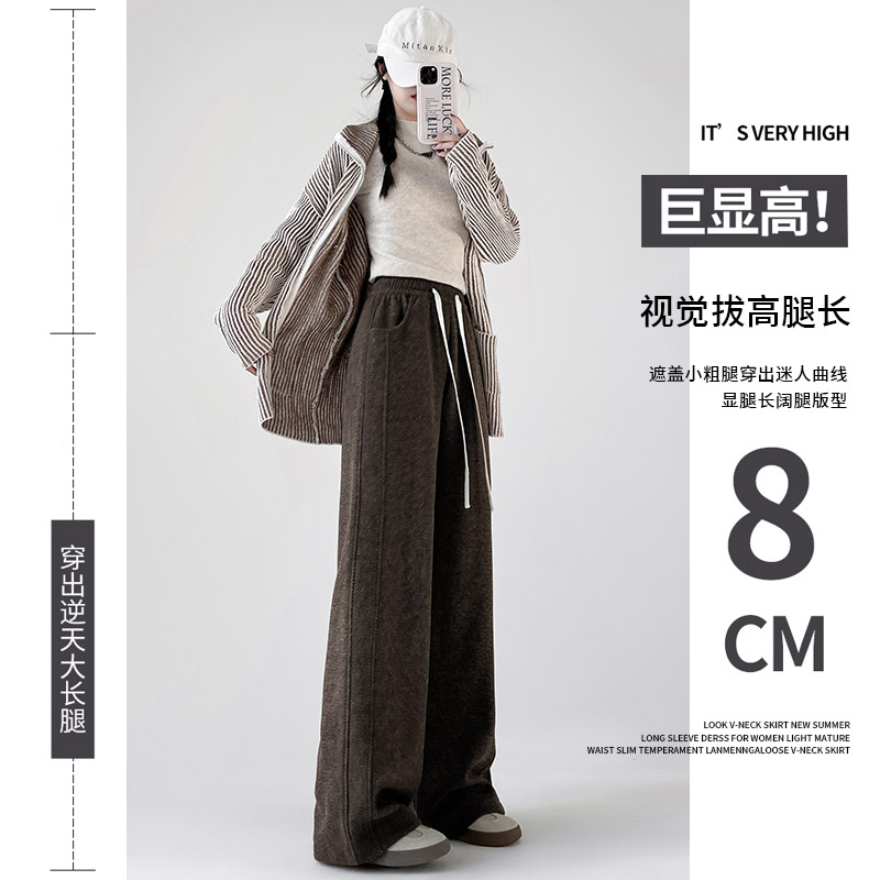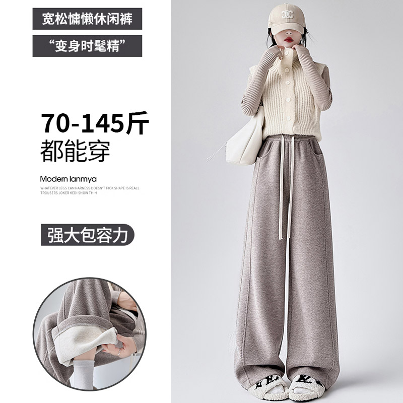 高级宽松bf慵懒垂感直筒加绒休闲阔腿裤 2025新款 子女春秋季 糯米裤