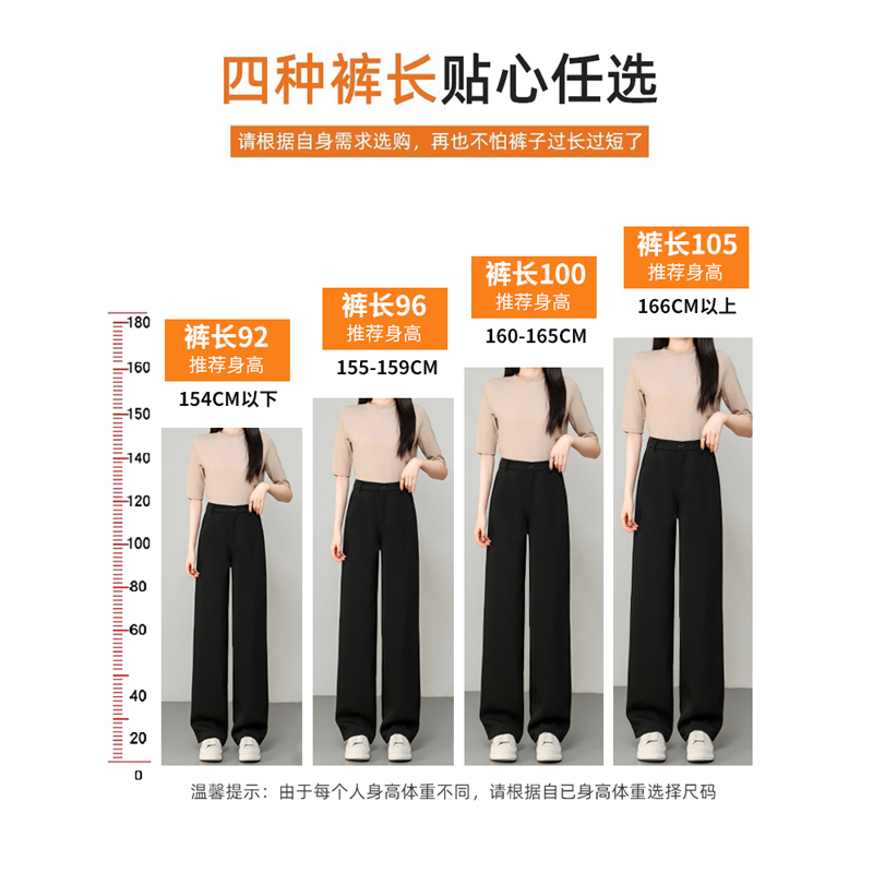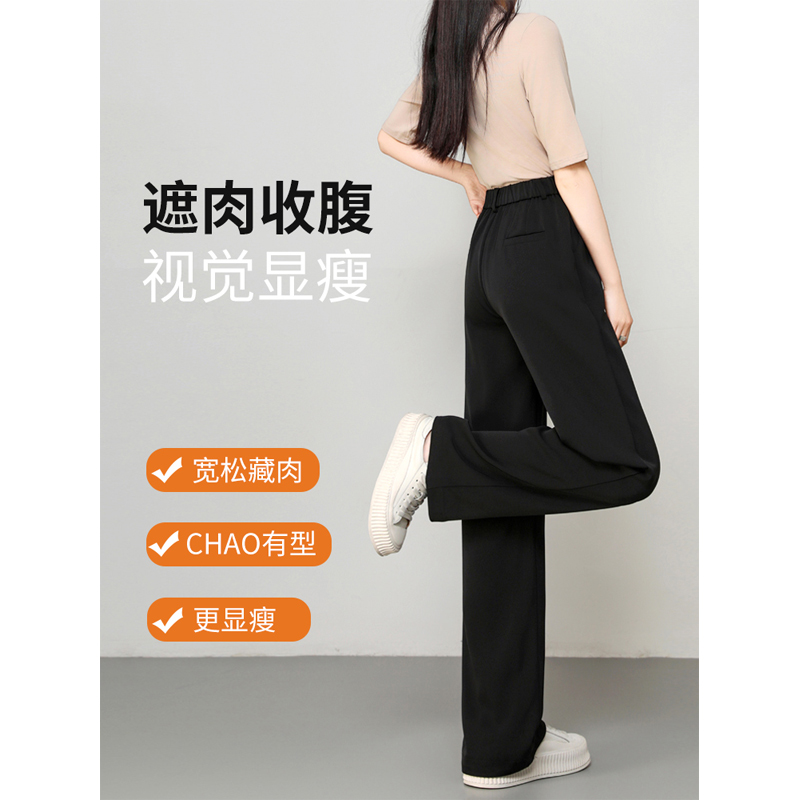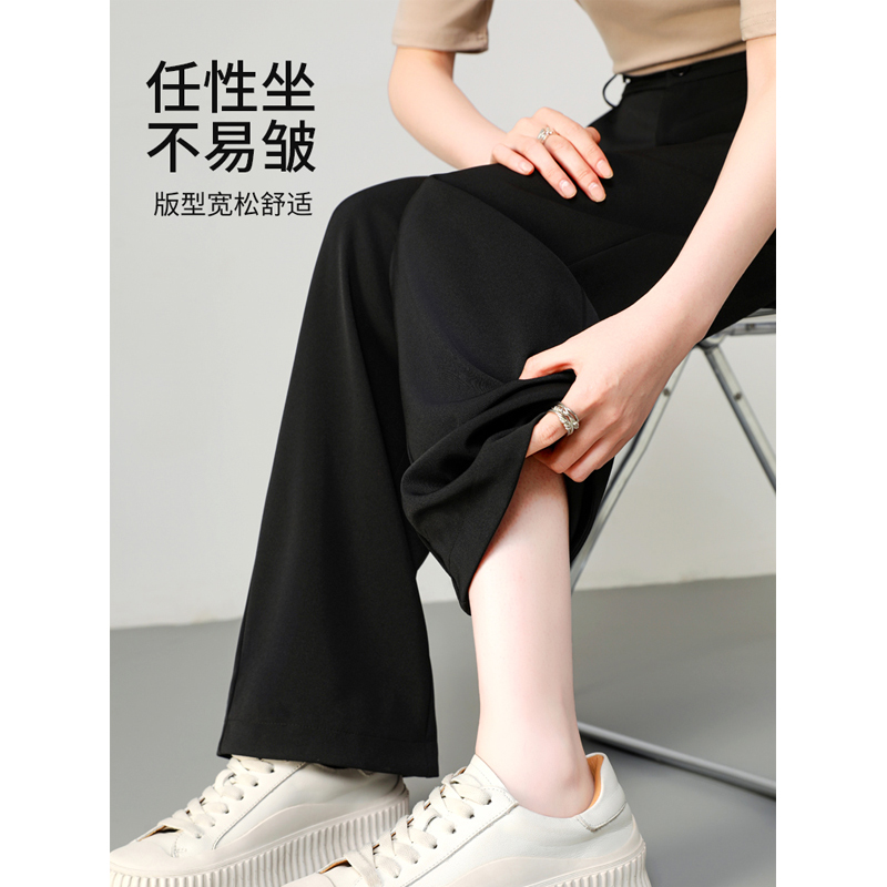 女春秋新款 休闲直筒慵懒松弛感裤 高腰垂感窄版 裤 子 西装 黑色阔腿裤