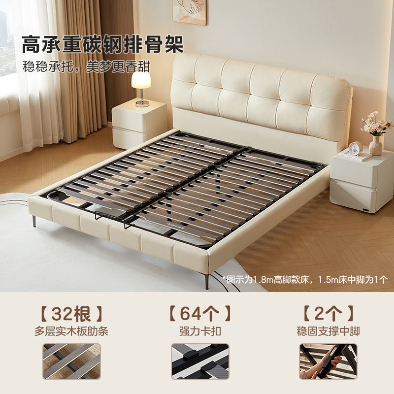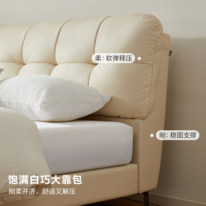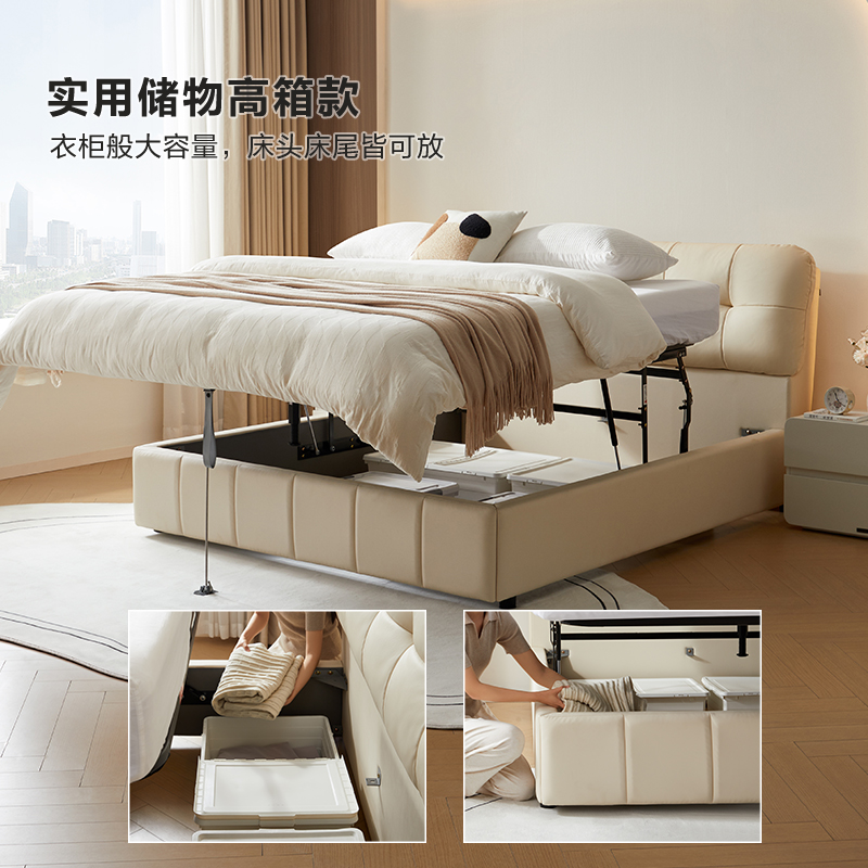 全友家居奶油风1米5单人储物床2025新款 主卧室高脚1米8真皮双人床