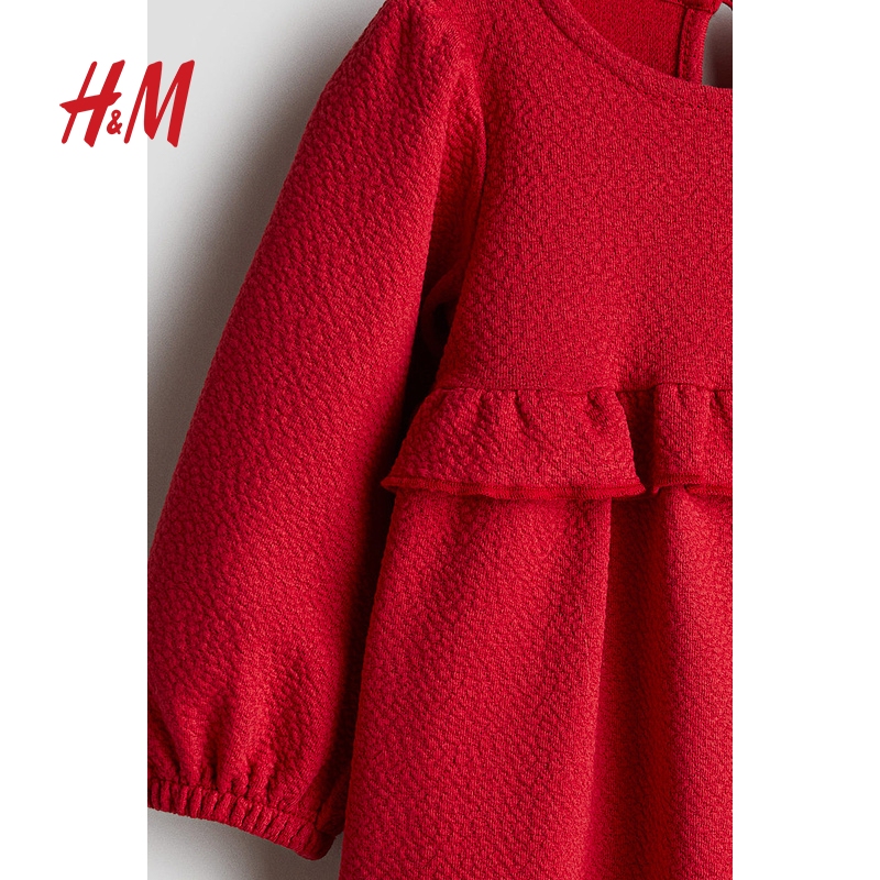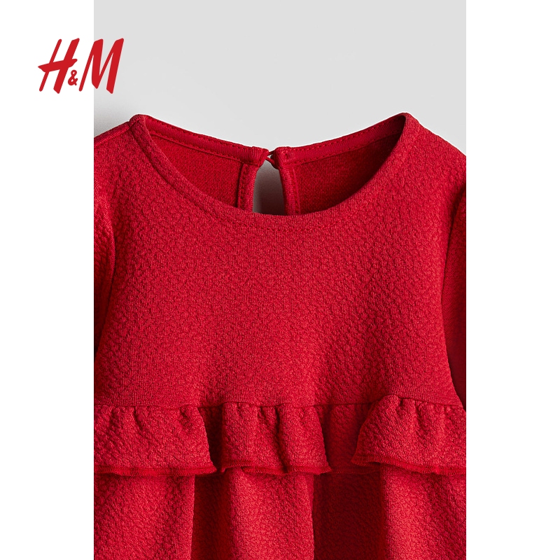 红色洋气公主裙1258712 褶边时尚 HM童装 女婴连衣裙秋季
