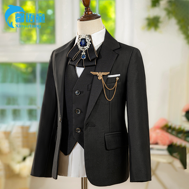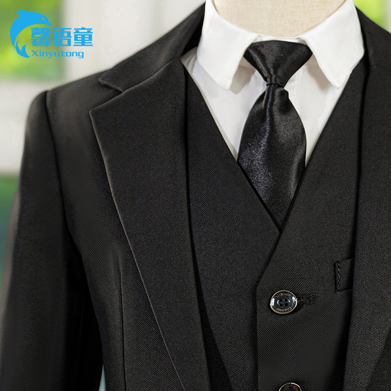 西服男孩钢琴演奏主持人礼服 演出服套装 高档黑色儿童西装 套装