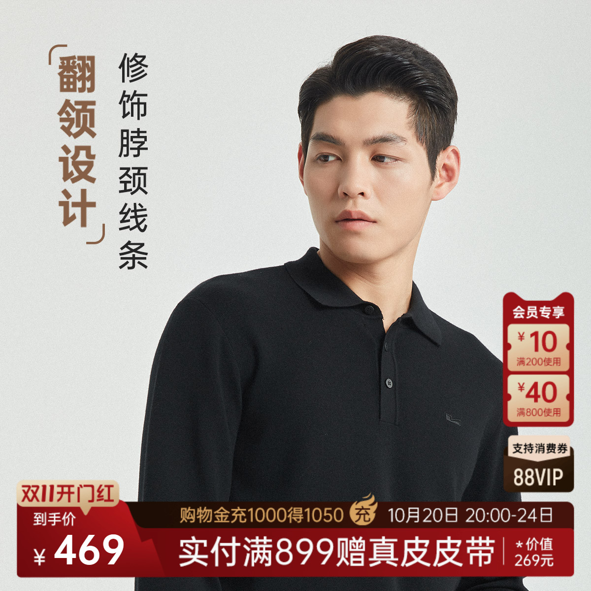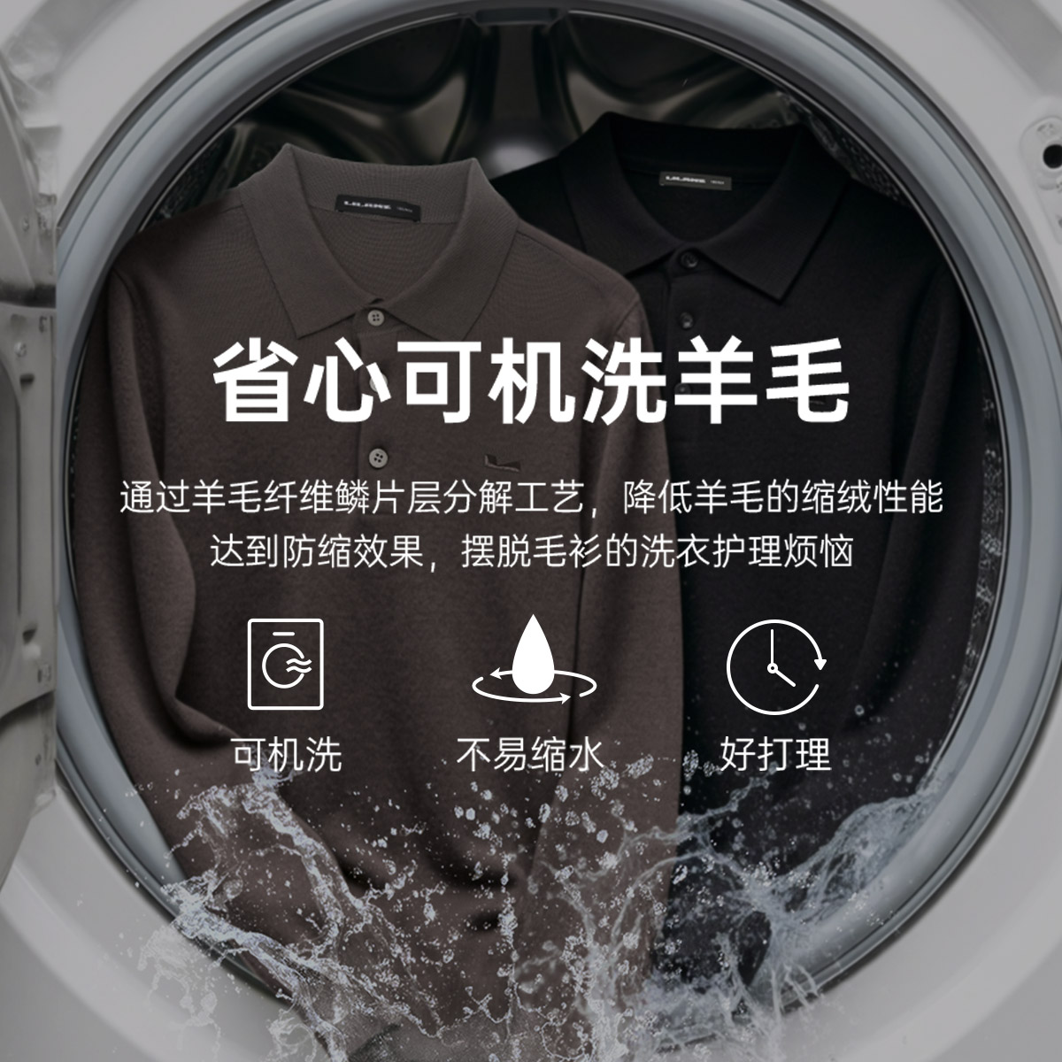 男士 毛衫 利郎官方 翻领商务休闲冬针织弹力毛衣 可机洗绵羊毛