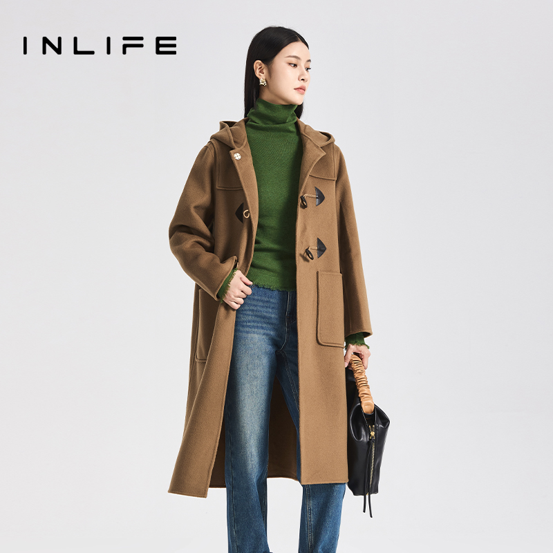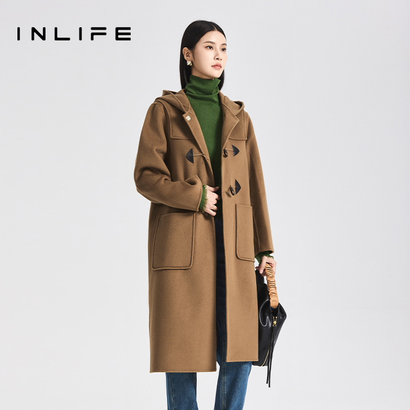 高级气质双面呢外套 加厚羊毛大衣女秋冬新款 伊纳芙法式 复古中长款